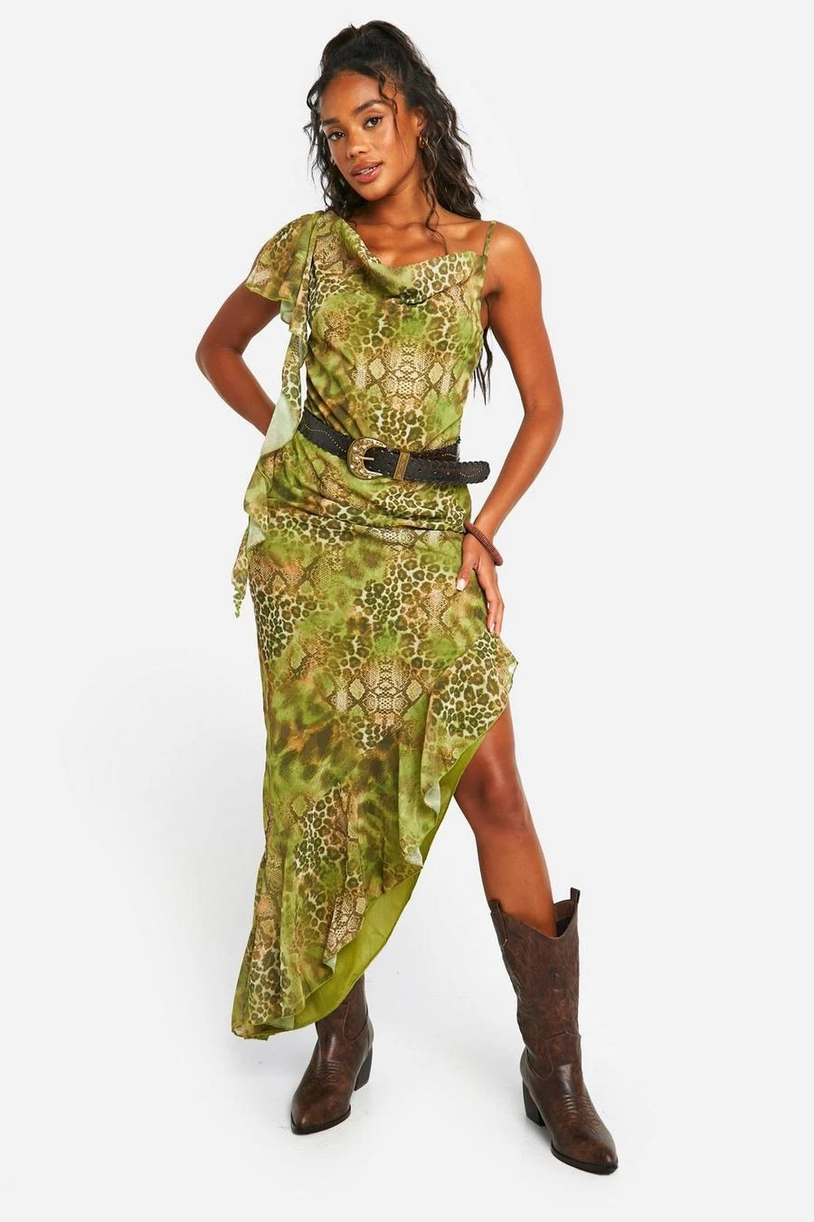 BOOHOO Snake Printed Cowl Neck Maxi Dress