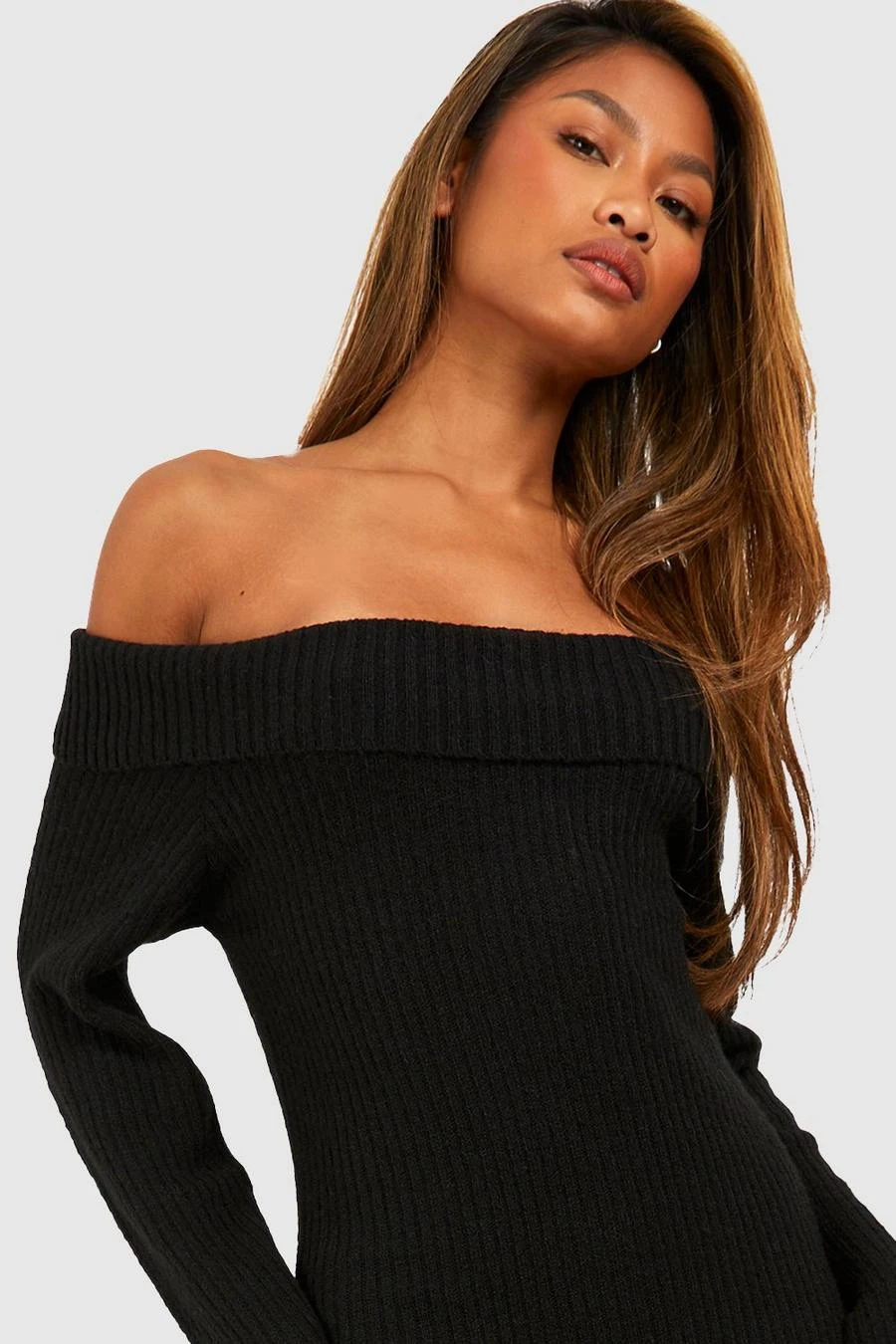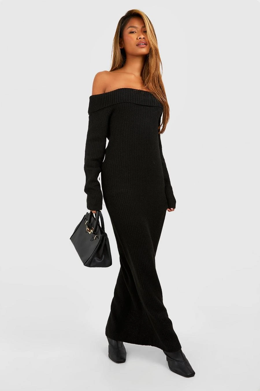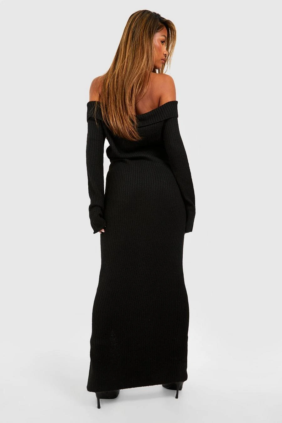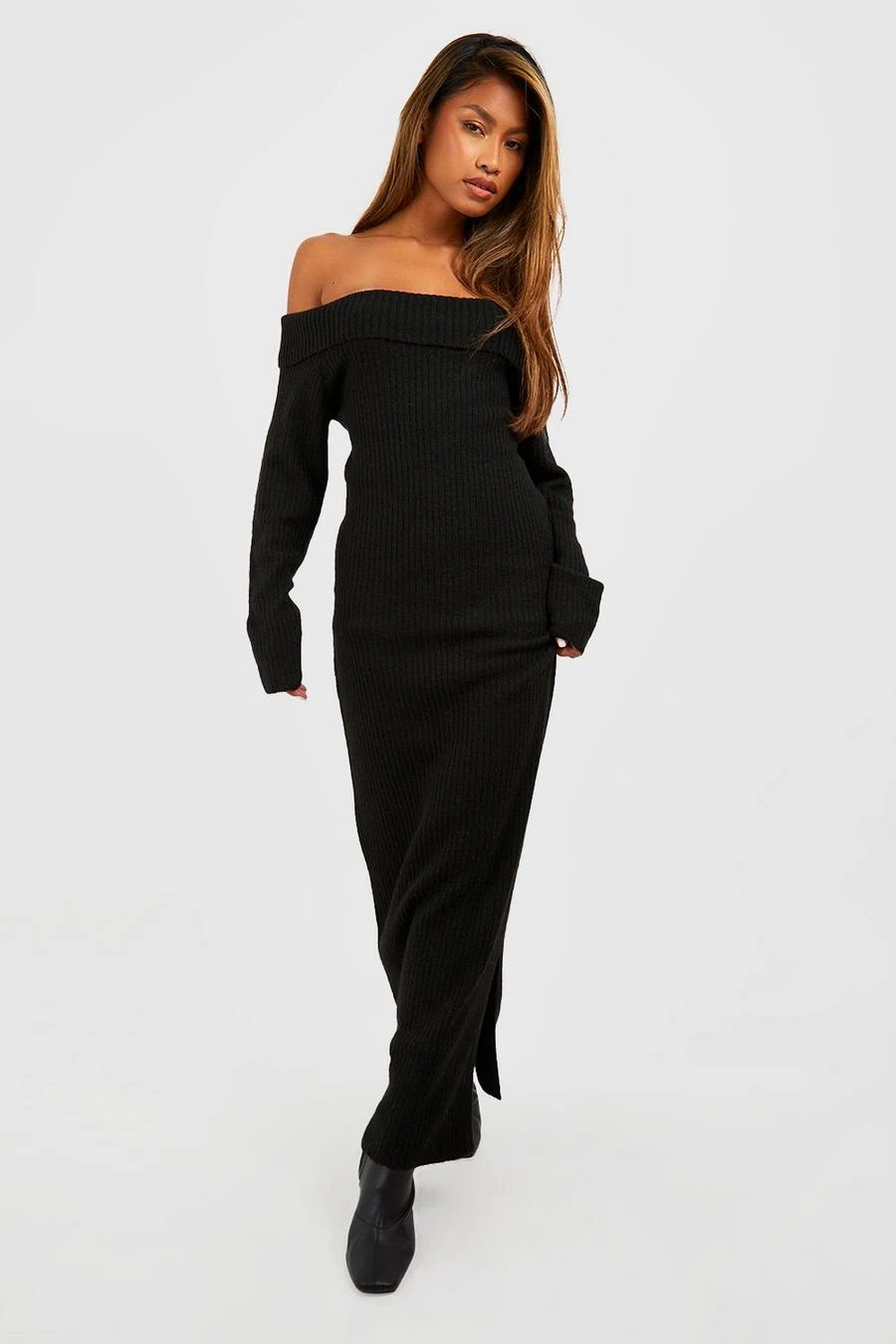 BOOHOO Soft Knit Bardot Maxi Jumper Dress
