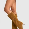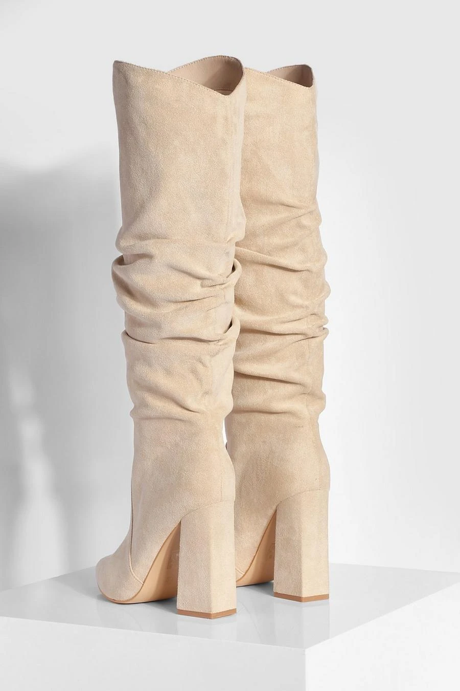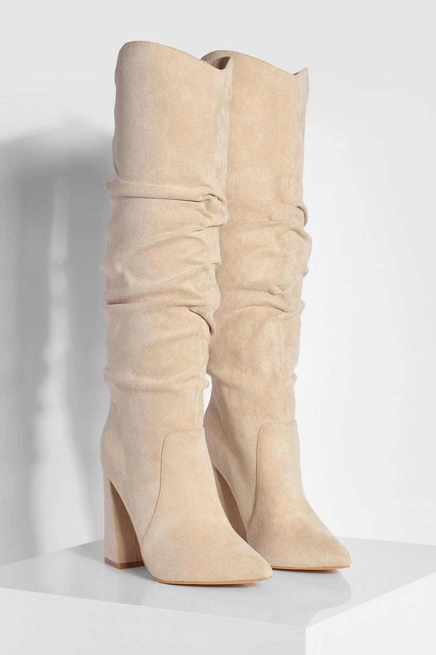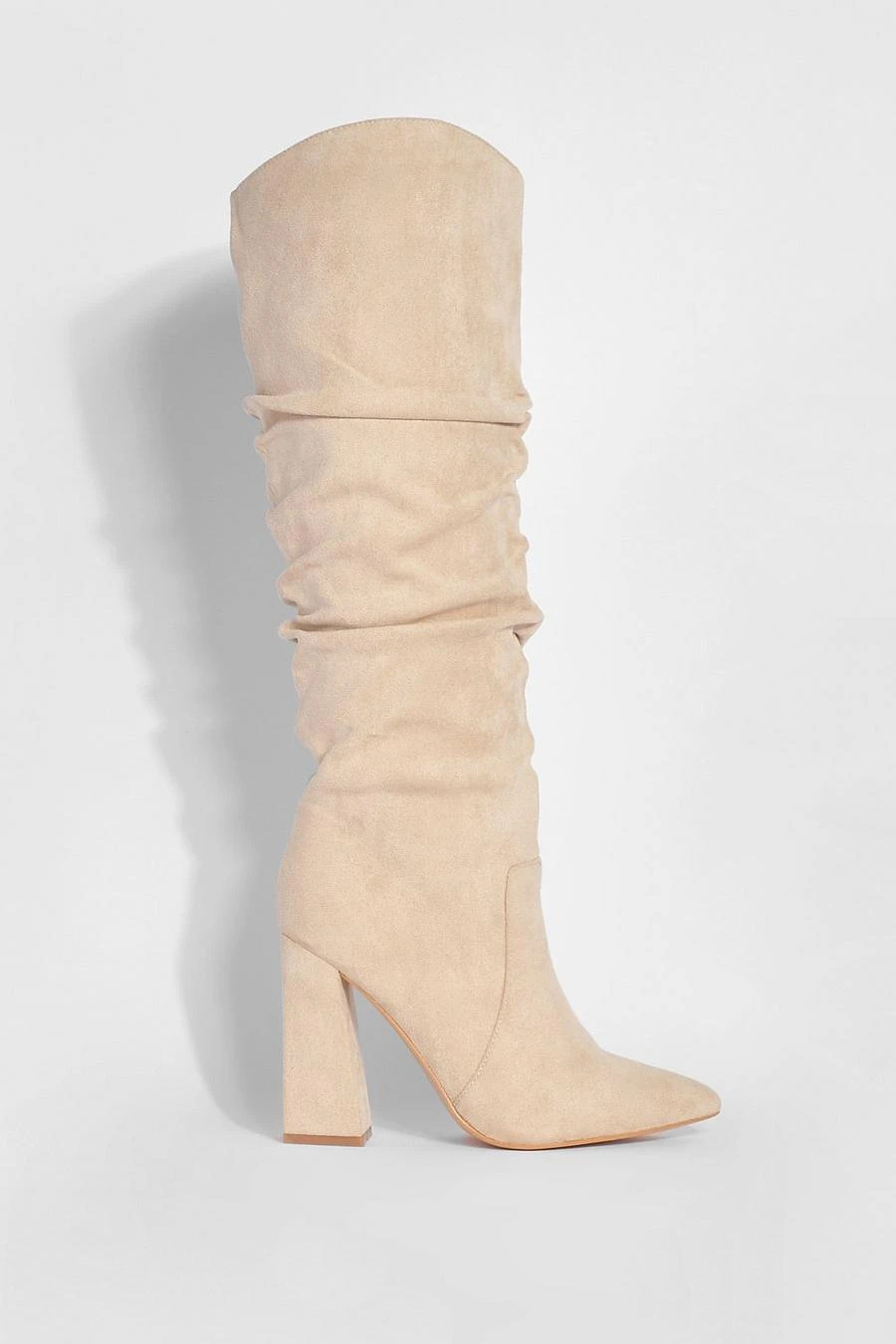 BOOHOO Soft Ruched Knee High Pointed Boots