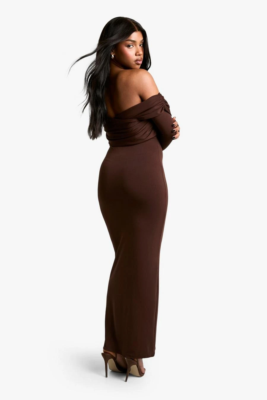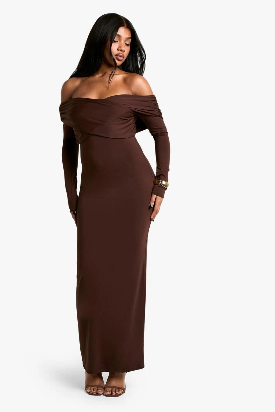 BOOHOO Soft Touch Twist Bardot Maxi Dress