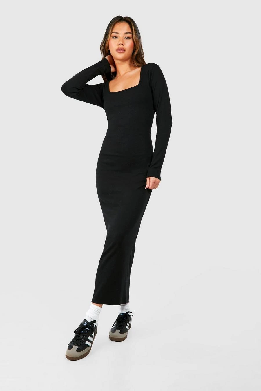 BOOHOO Square Neck Long Sleeve Maxi Dress