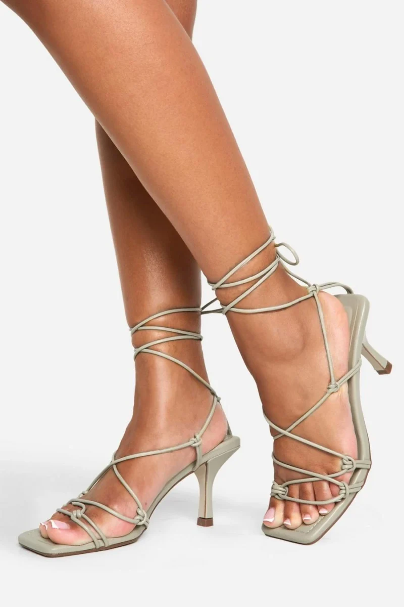 BOOHOO Square Toe Knot Detail Wrap Up Heels