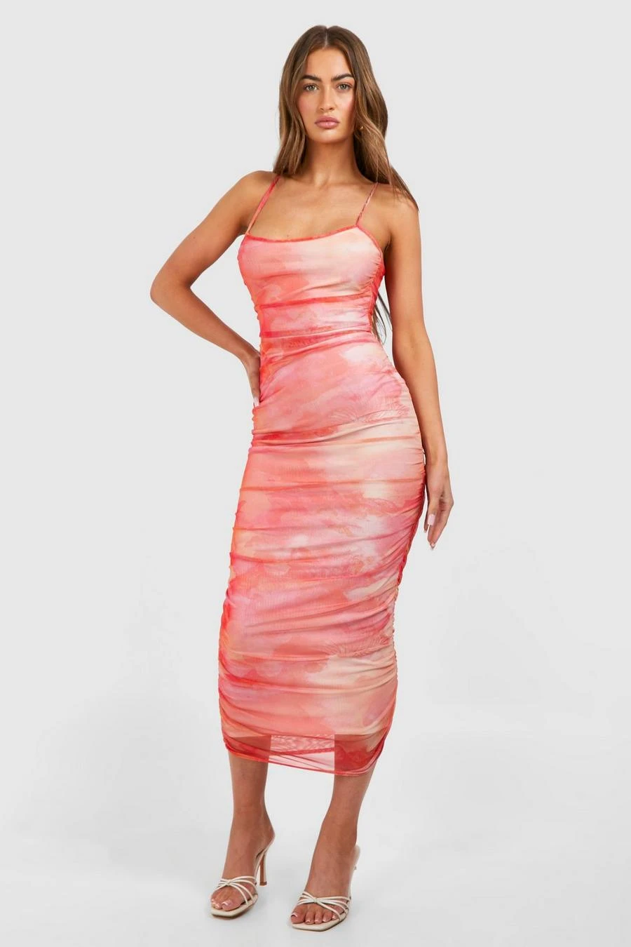BOOHOO Strappy Mesh Floral Maxi Dress