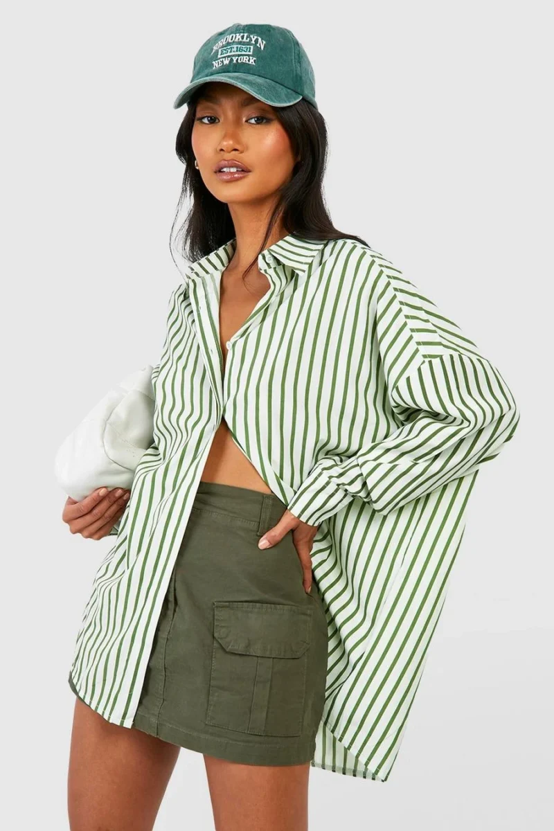 BOOHOO Stripe Drop Shoulder Oversized Shirt
