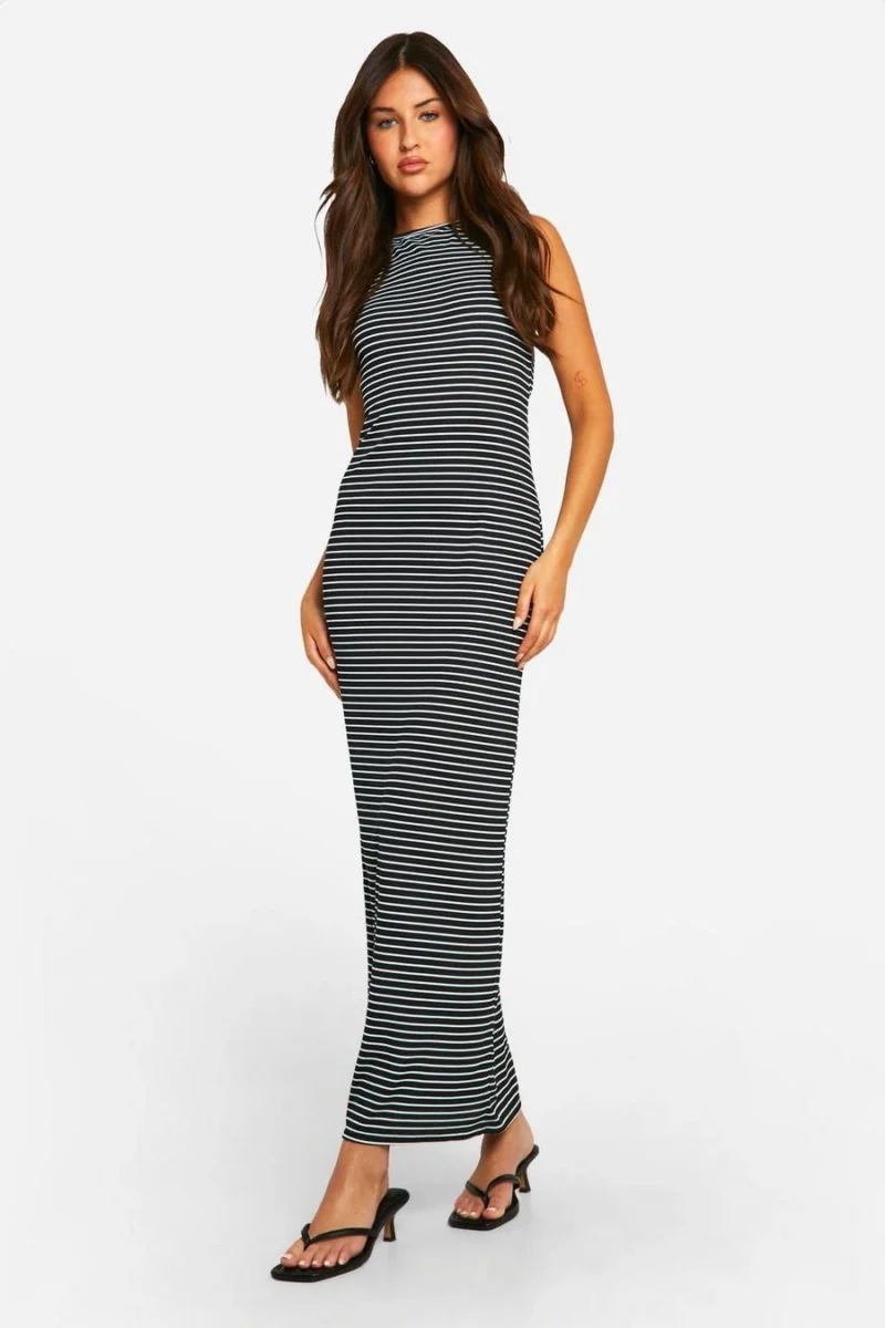 BOOHOO Stripe Low Back Tie Maxi Dress