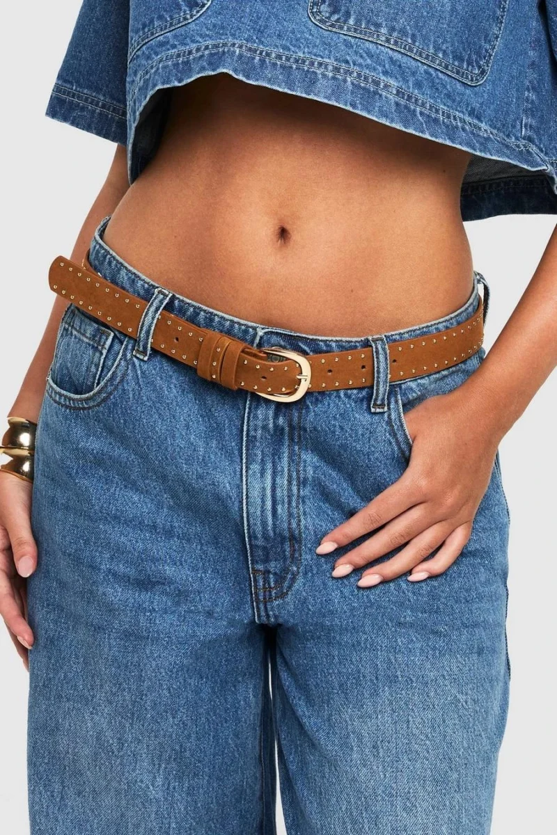 BOOHOO Studded Detail Faux Suede Belt