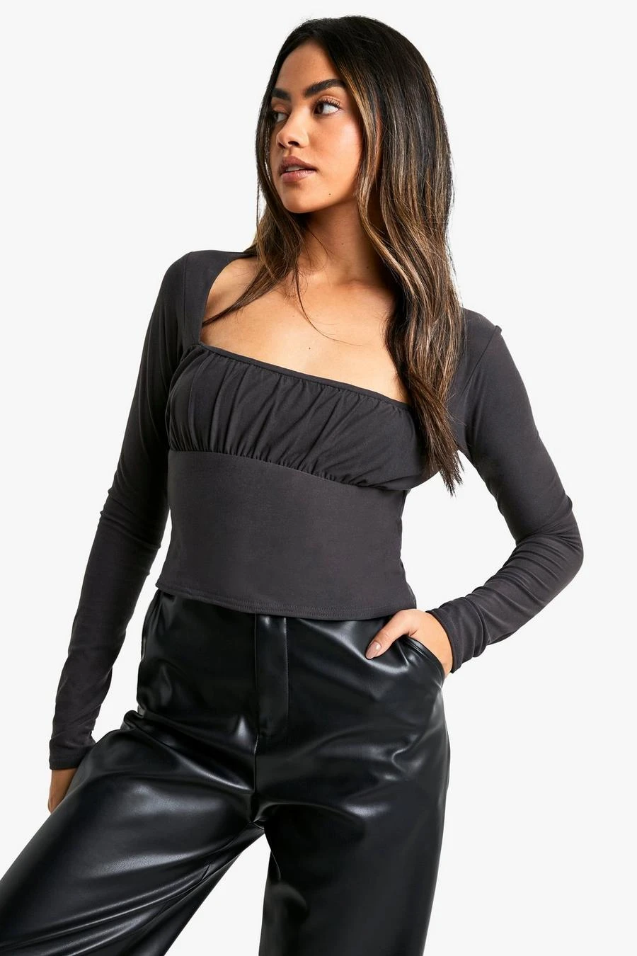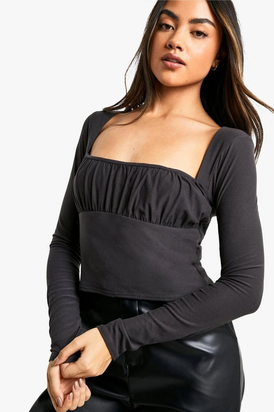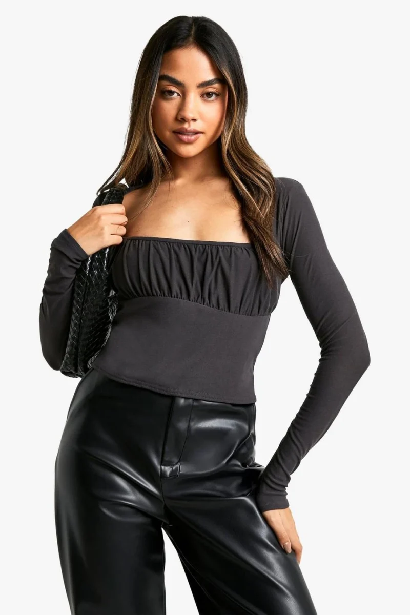 BOOHOO Super Soft Ruched Bust Long Sleeve Top