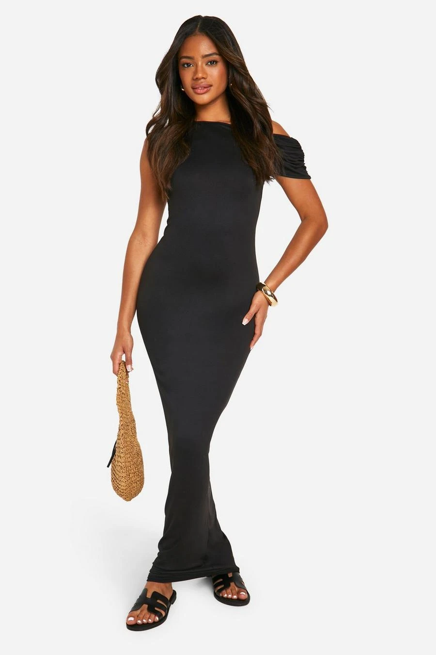BOOHOO Super Soft Slash Neck Cap Sleeve Maxi Dress