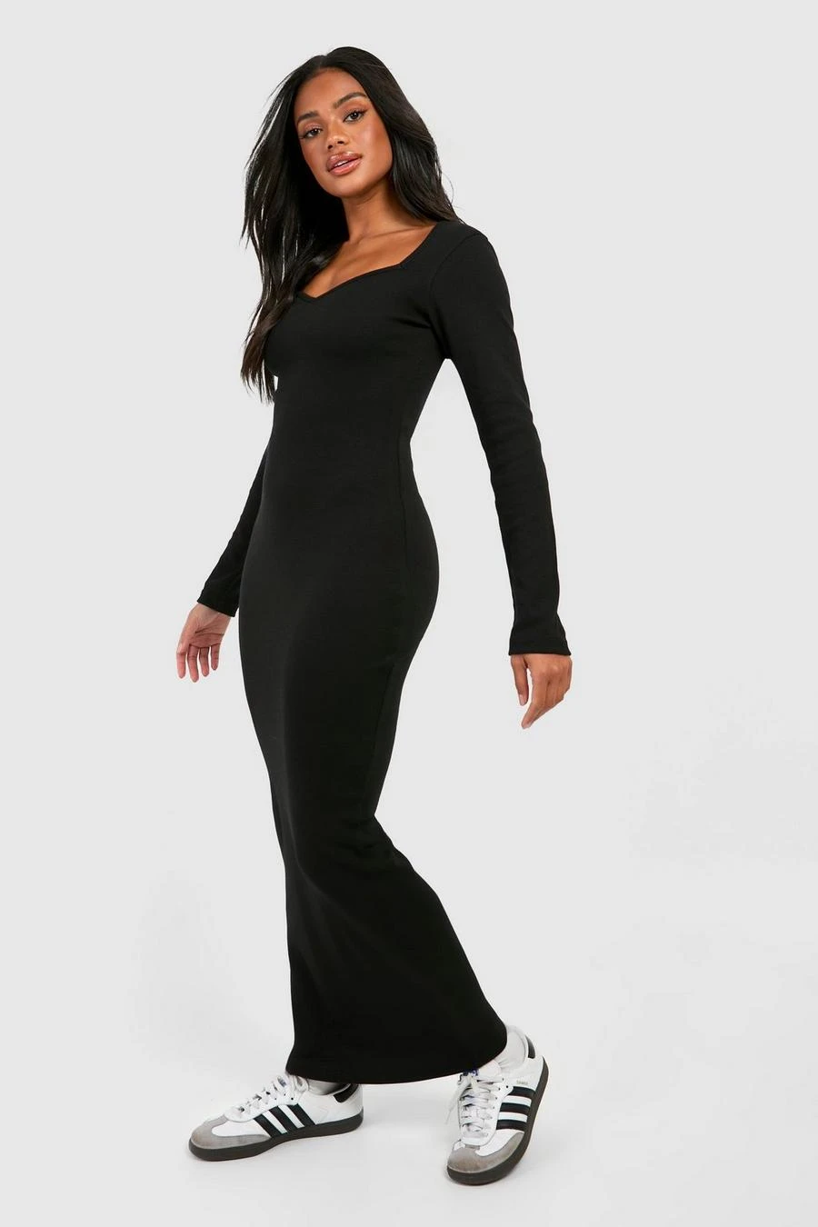 BOOHOO Sweetheart Rib Long Sleeve Maxi Dress