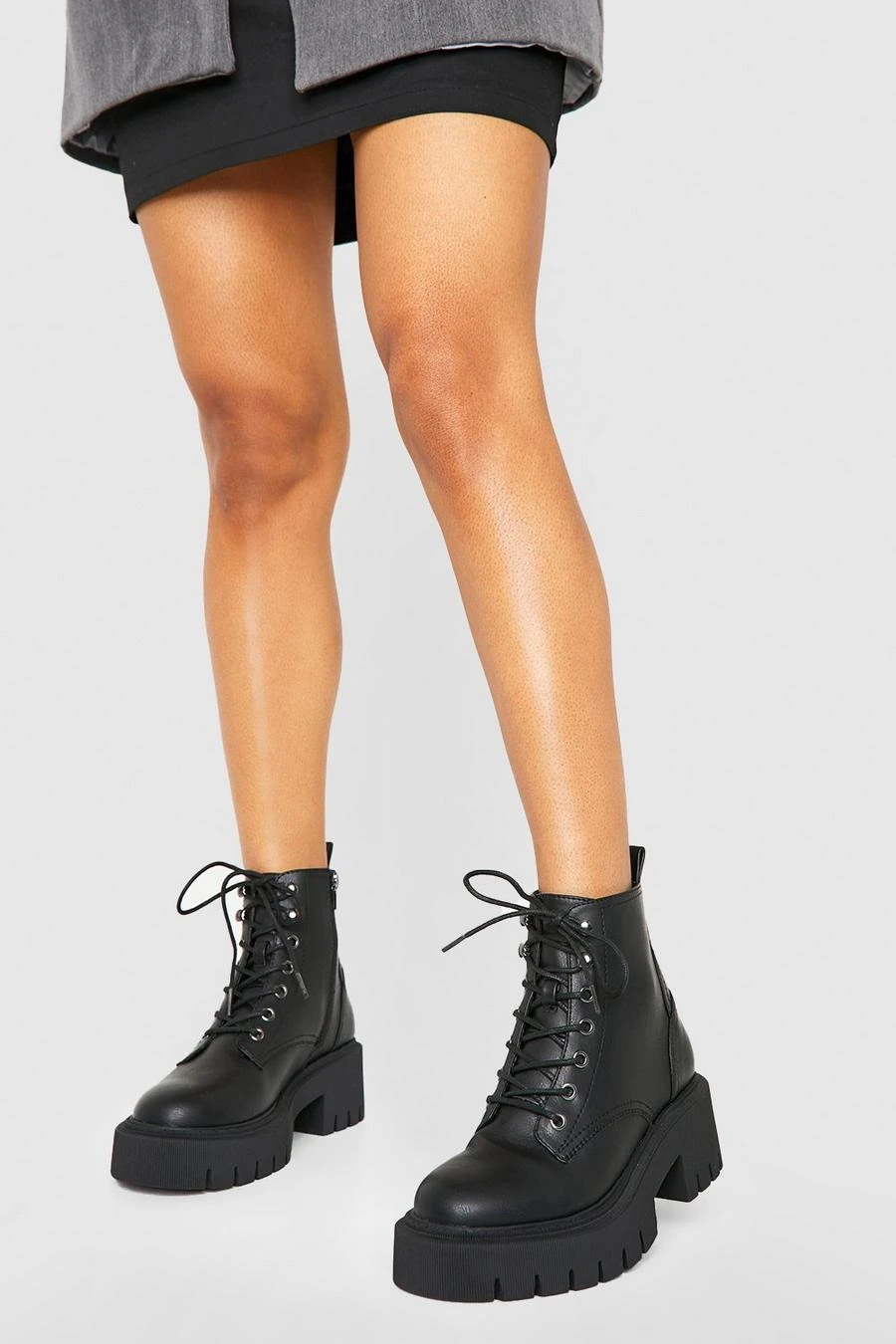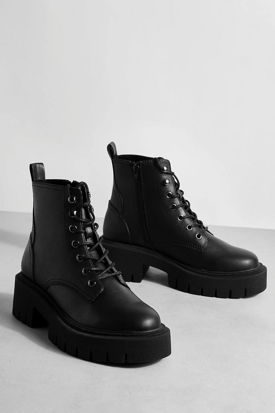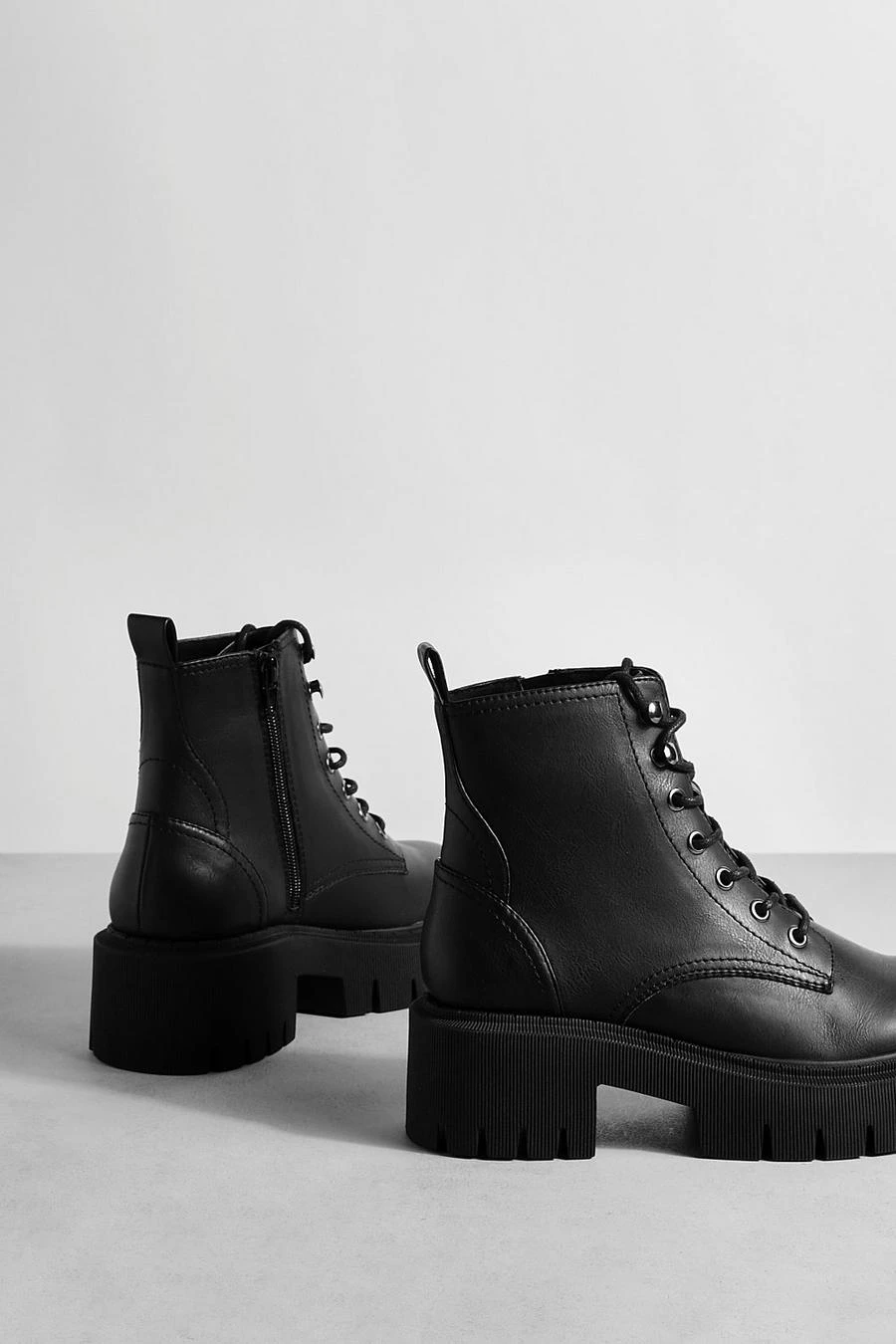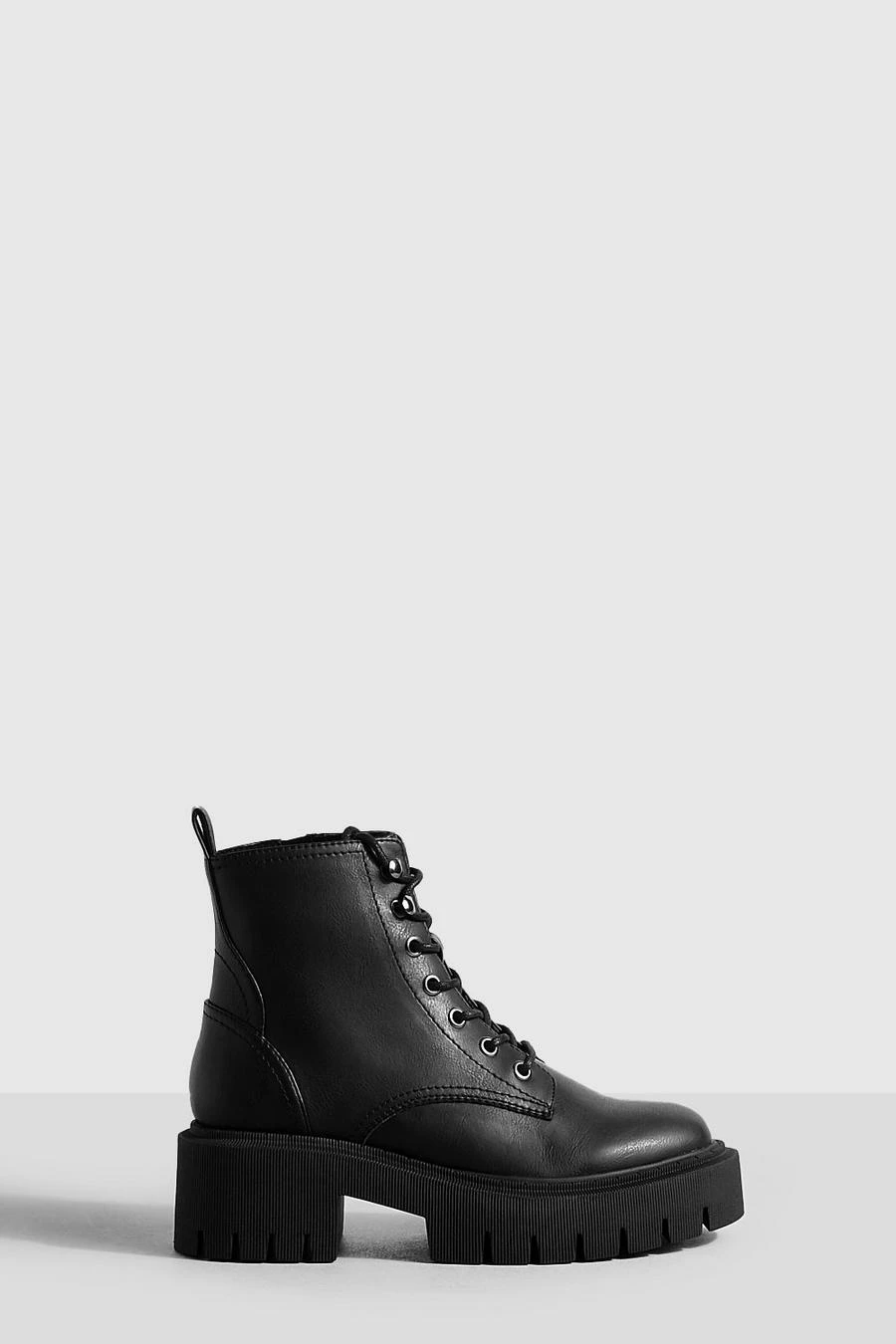BOOHOO Tab Detail Chunky Lace Up Hiker Boots