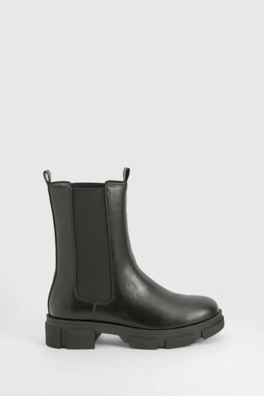 BOOHOO Tab Detail Elastic Insert Chunky Chelsea Boot