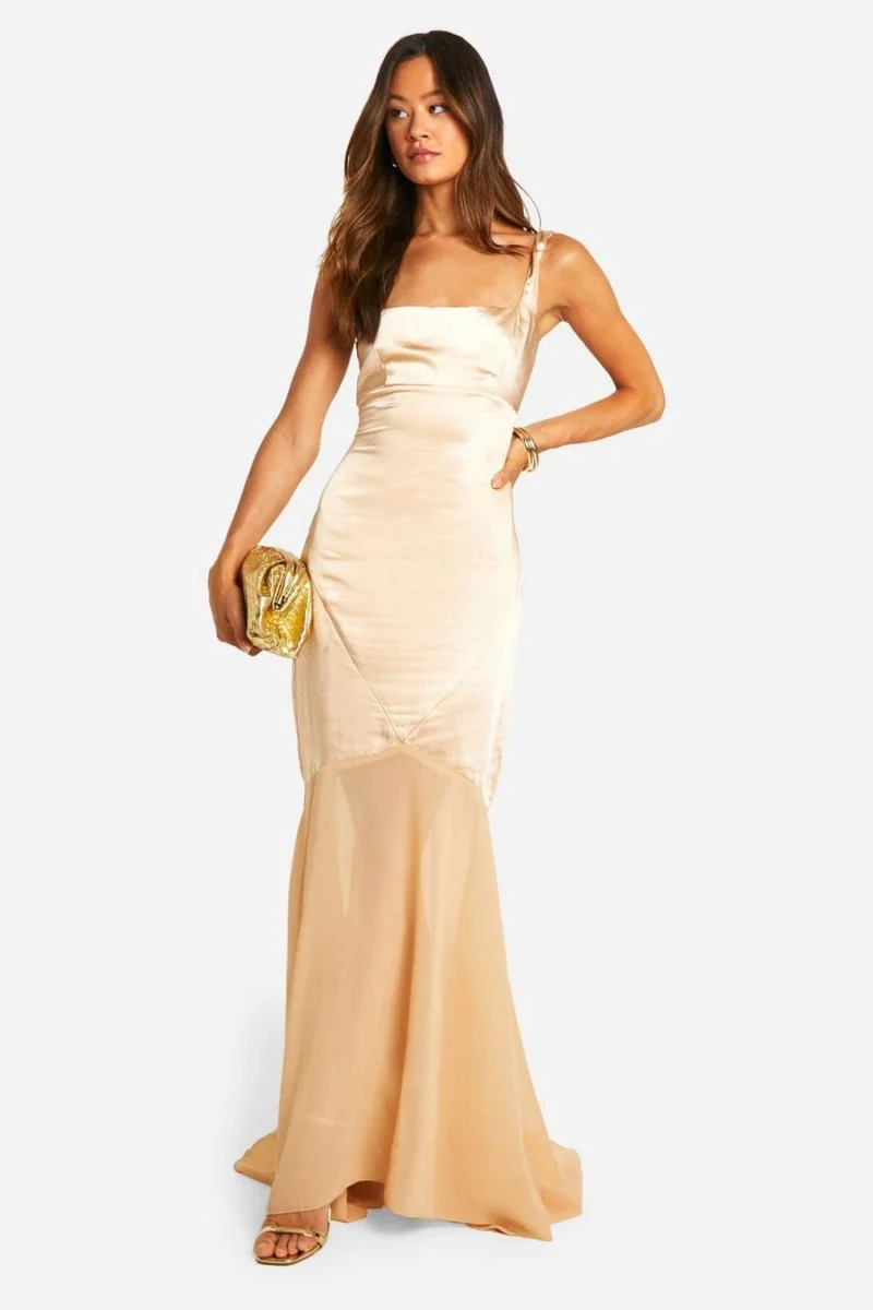 BOOHOO Tall Chiffon Satin Mix Maxi Dress