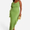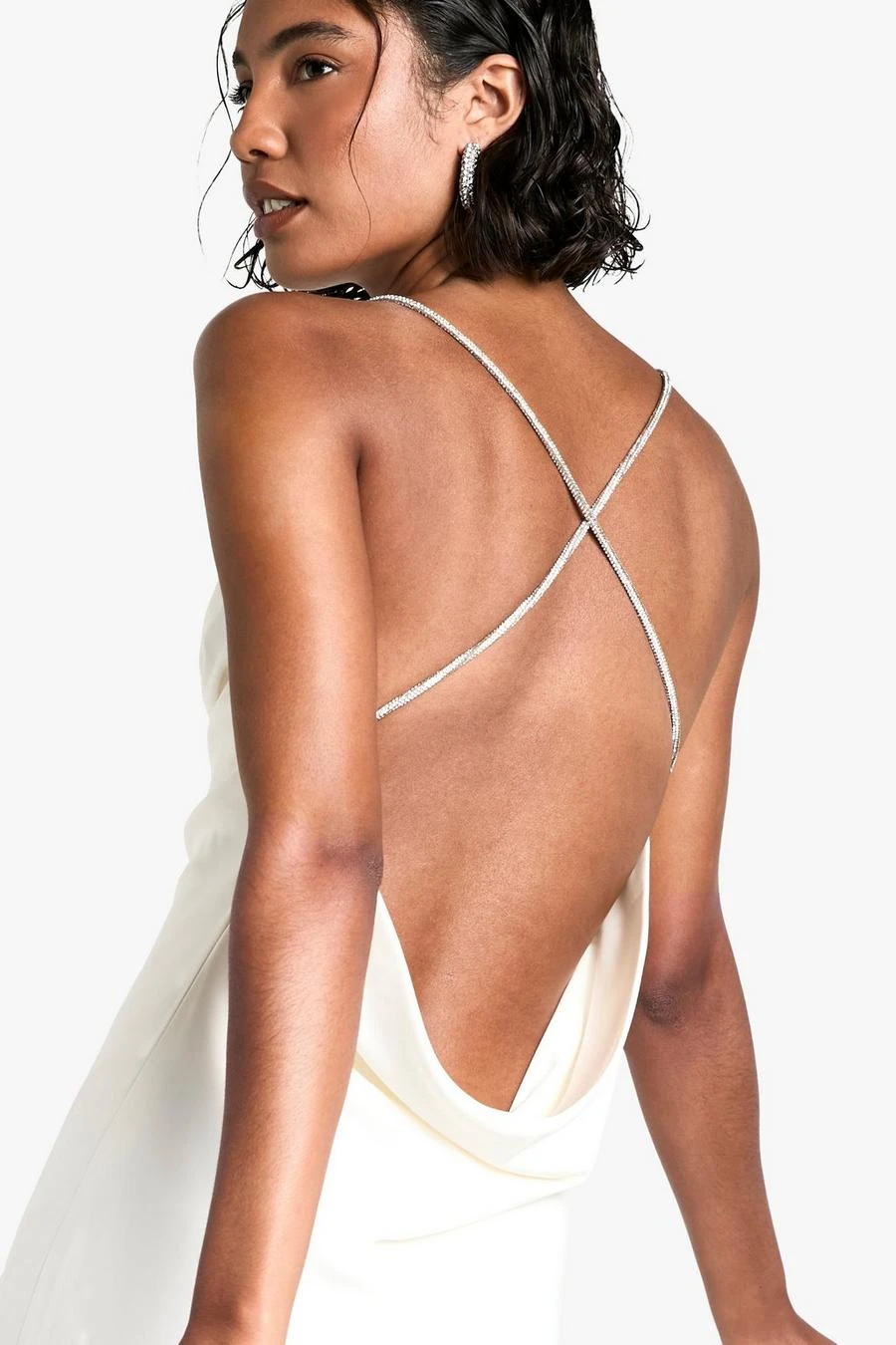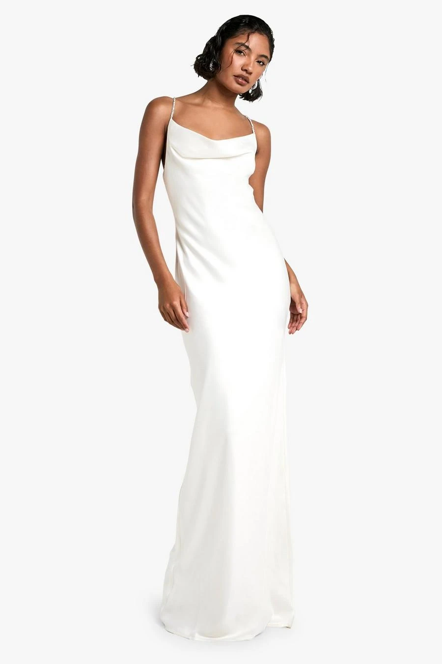 BOOHOO Tall Cowl Diamante Detail Satin Slip Maxi