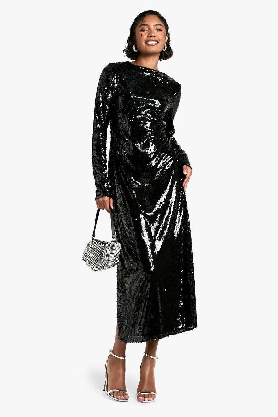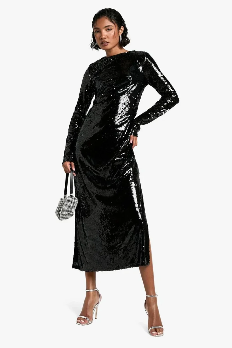 BOOHOO Tall Crew Neck Sequin Maxi Dress