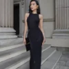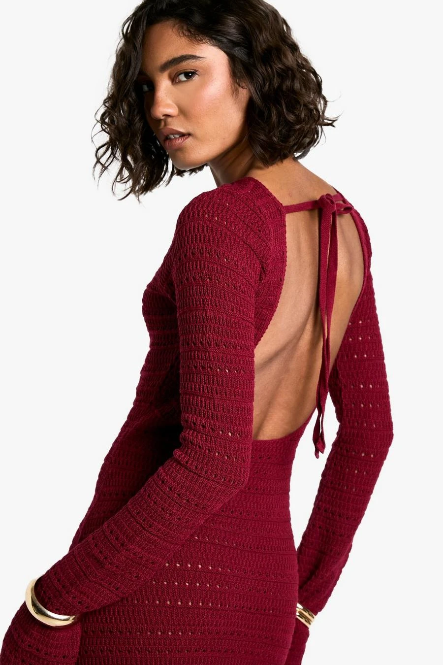 BOOHOO Tall Crochet Tie Back Knitted Maxi Dress