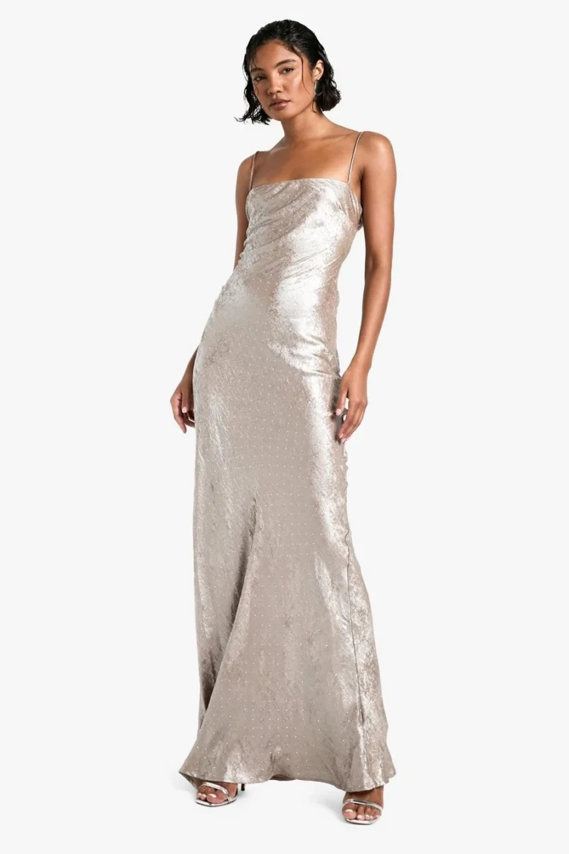 BOOHOO Tall Diamante Satin Maxi Slip Dress