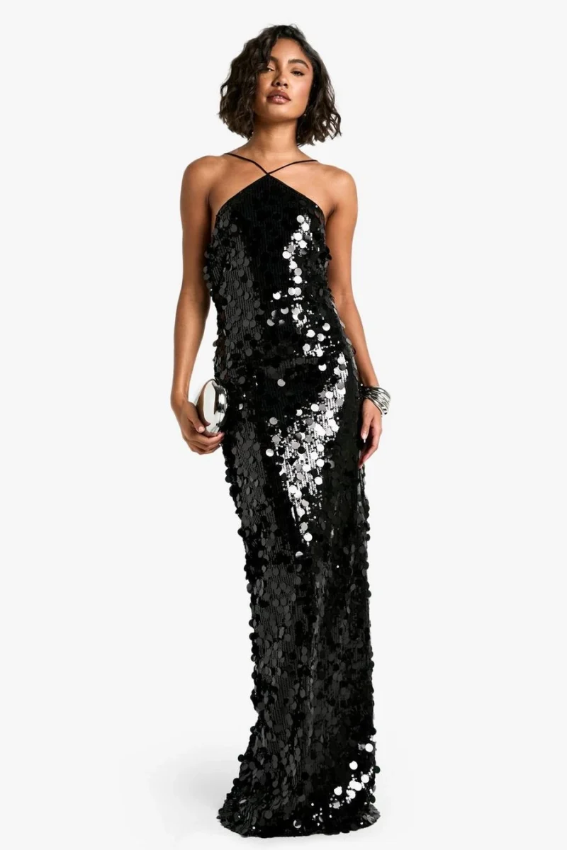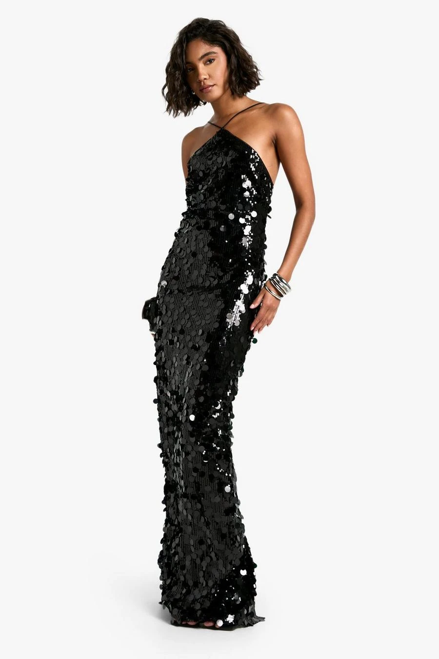 BOOHOO Tall Disc Sequin Halterneck Maxi Dress