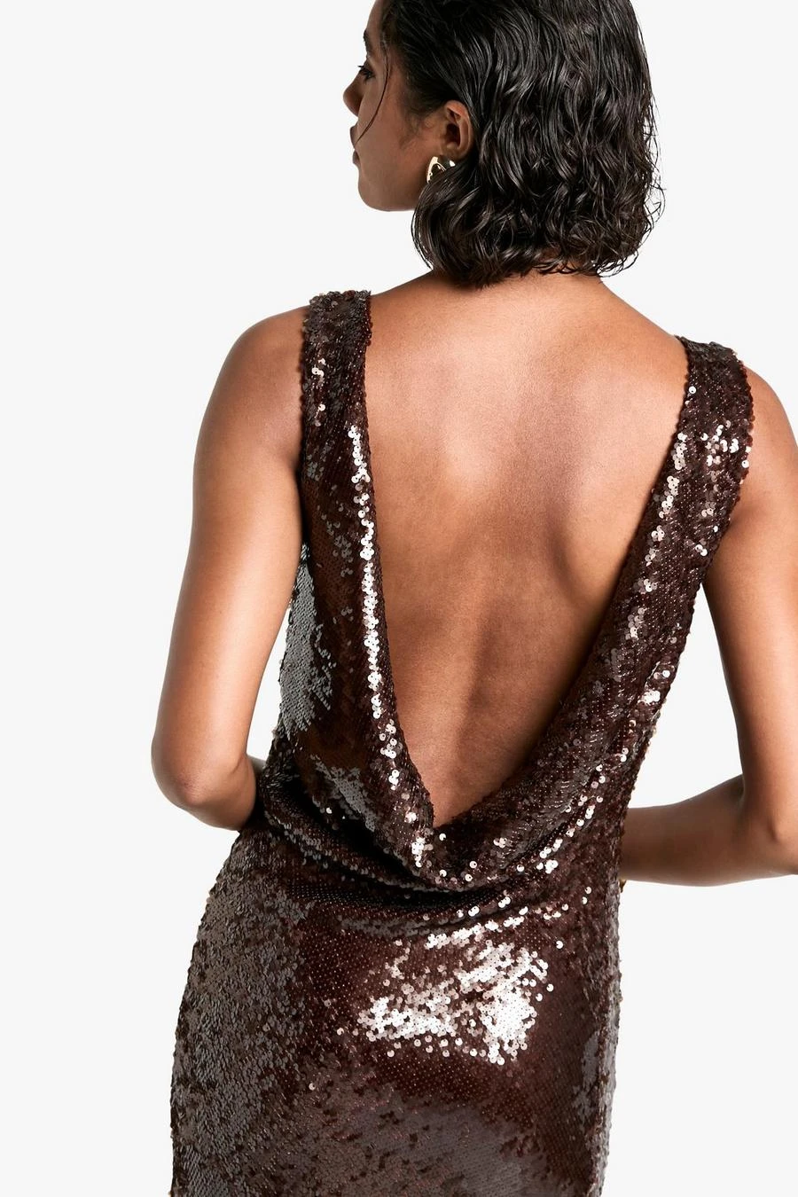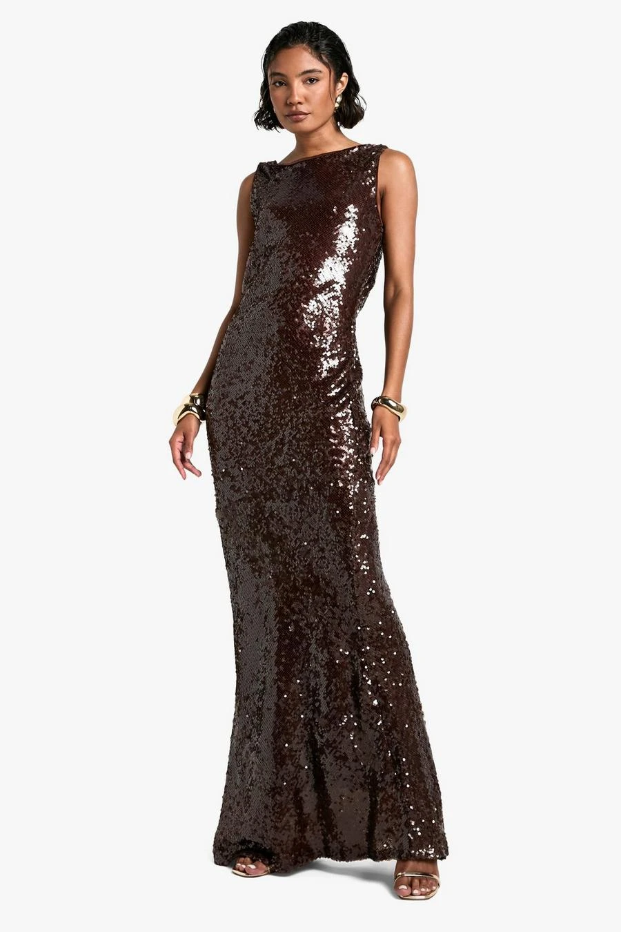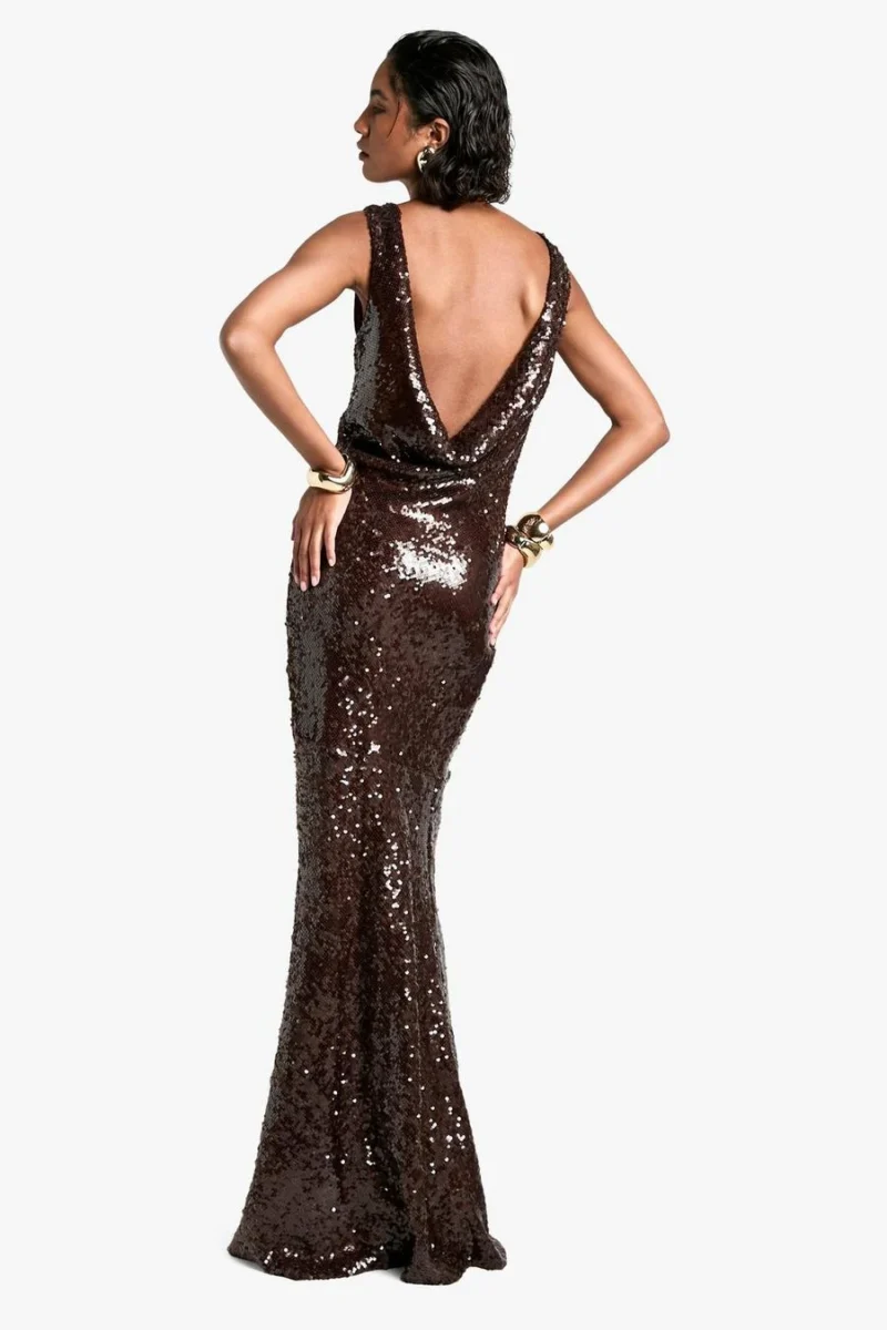 BOOHOO Tall Extreme Cowl Back Sequin Maxi Dress