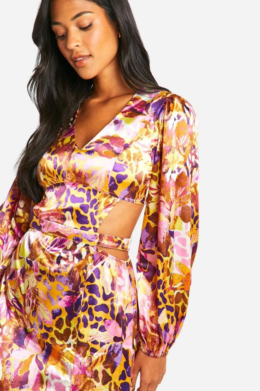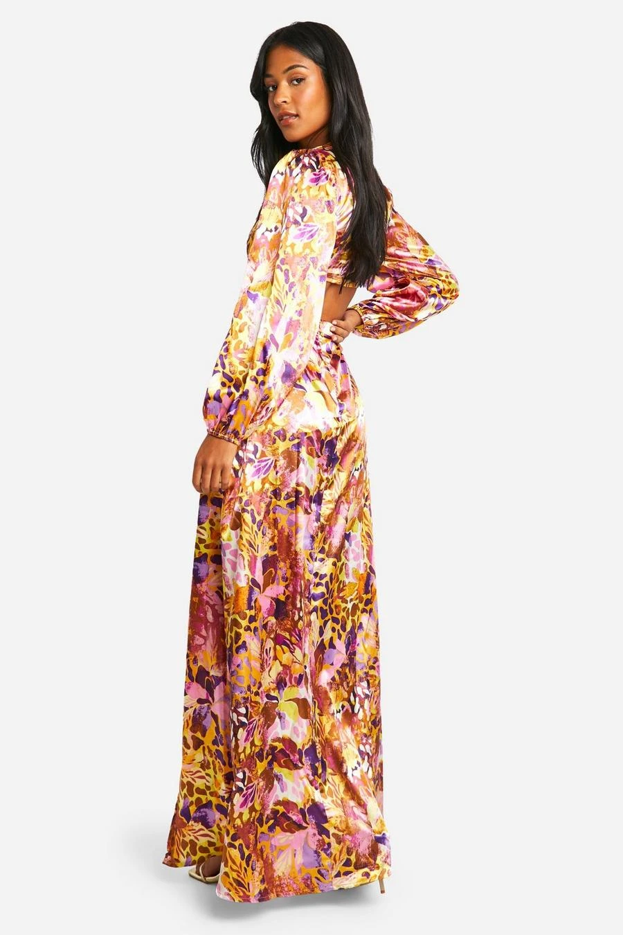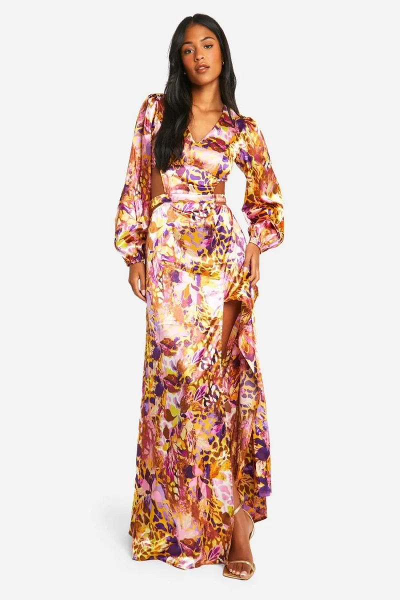 BOOHOO Tall Leopard Floral Cut Out Maxi Dress