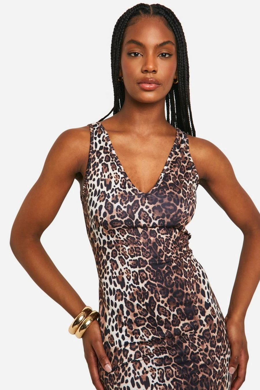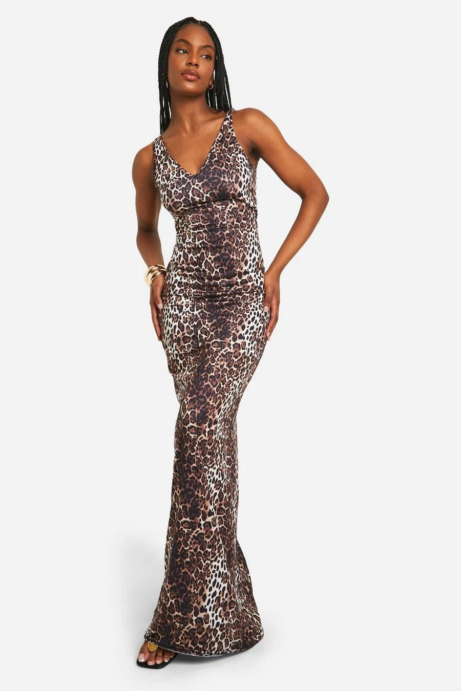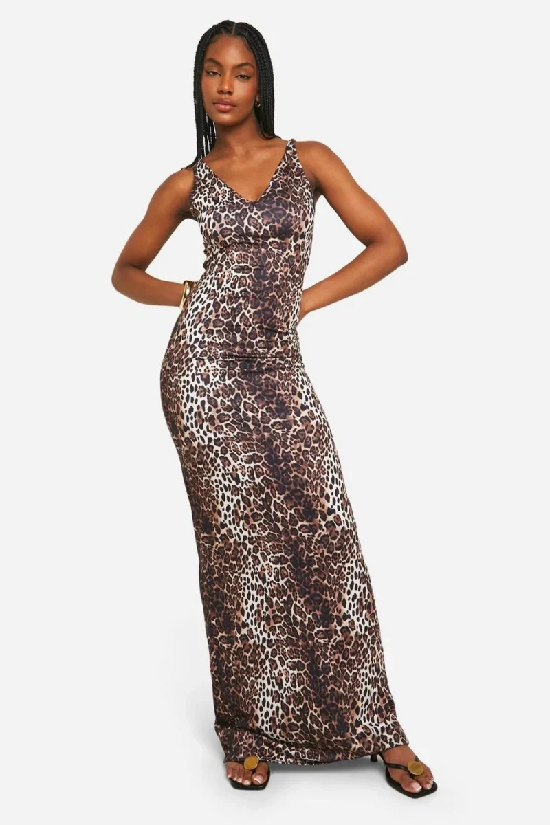 BOOHOO Tall Leopard Print V Neck Maxi Dress