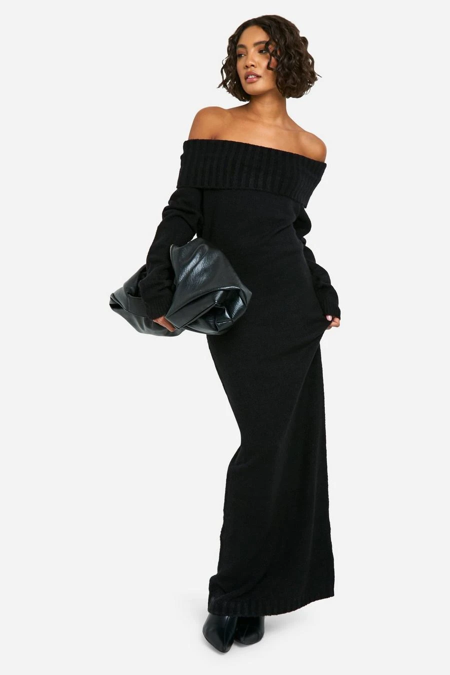 BOOHOO Tall Premium Oversized Bardot Neckline Maxi Jumper Dress