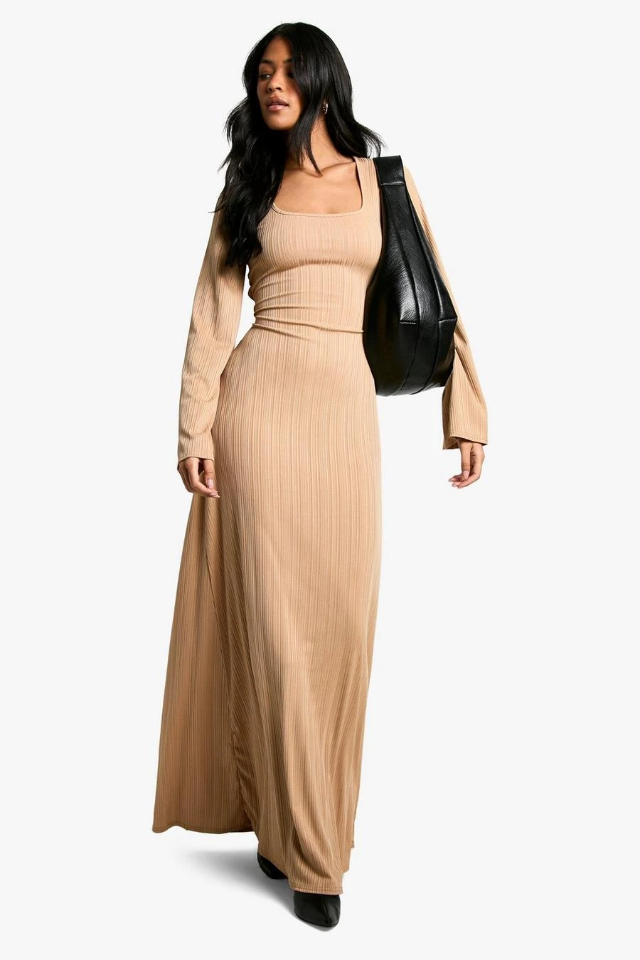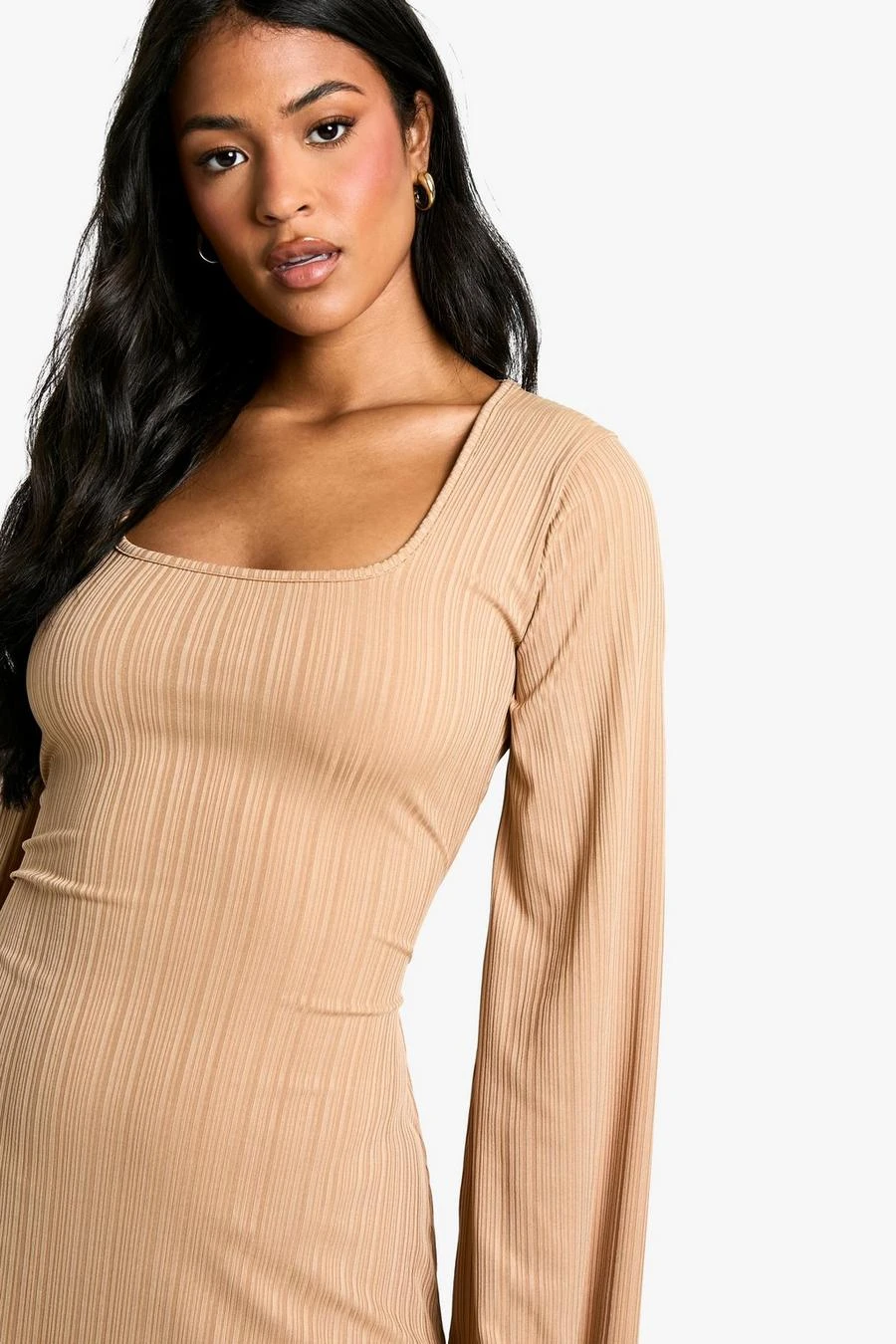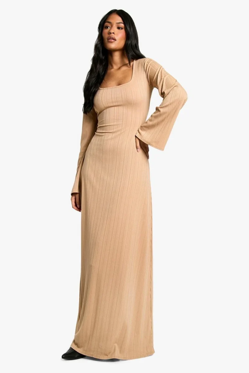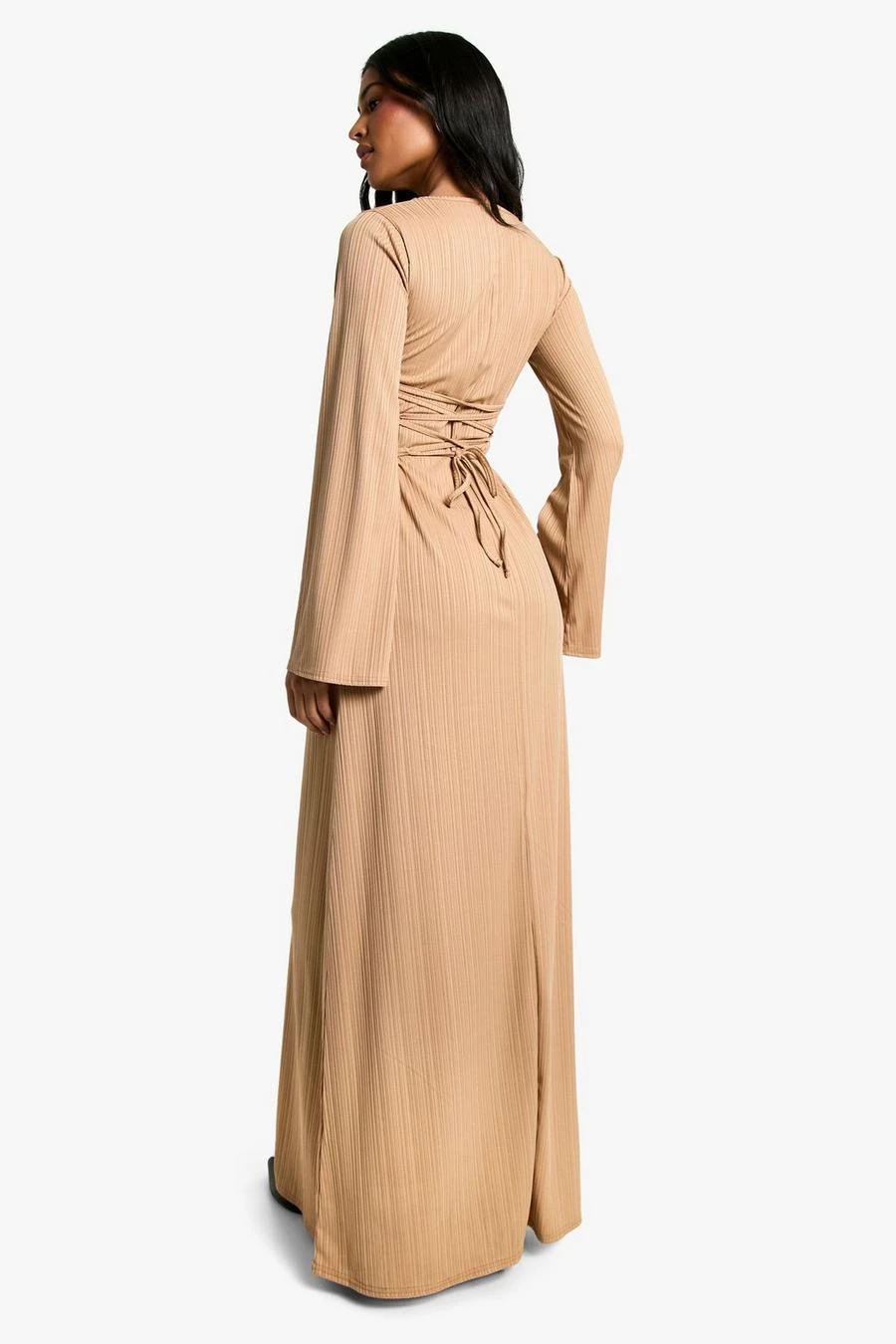 BOOHOO Tall Rib Lace Up Flare Sleeve Maxi Dress