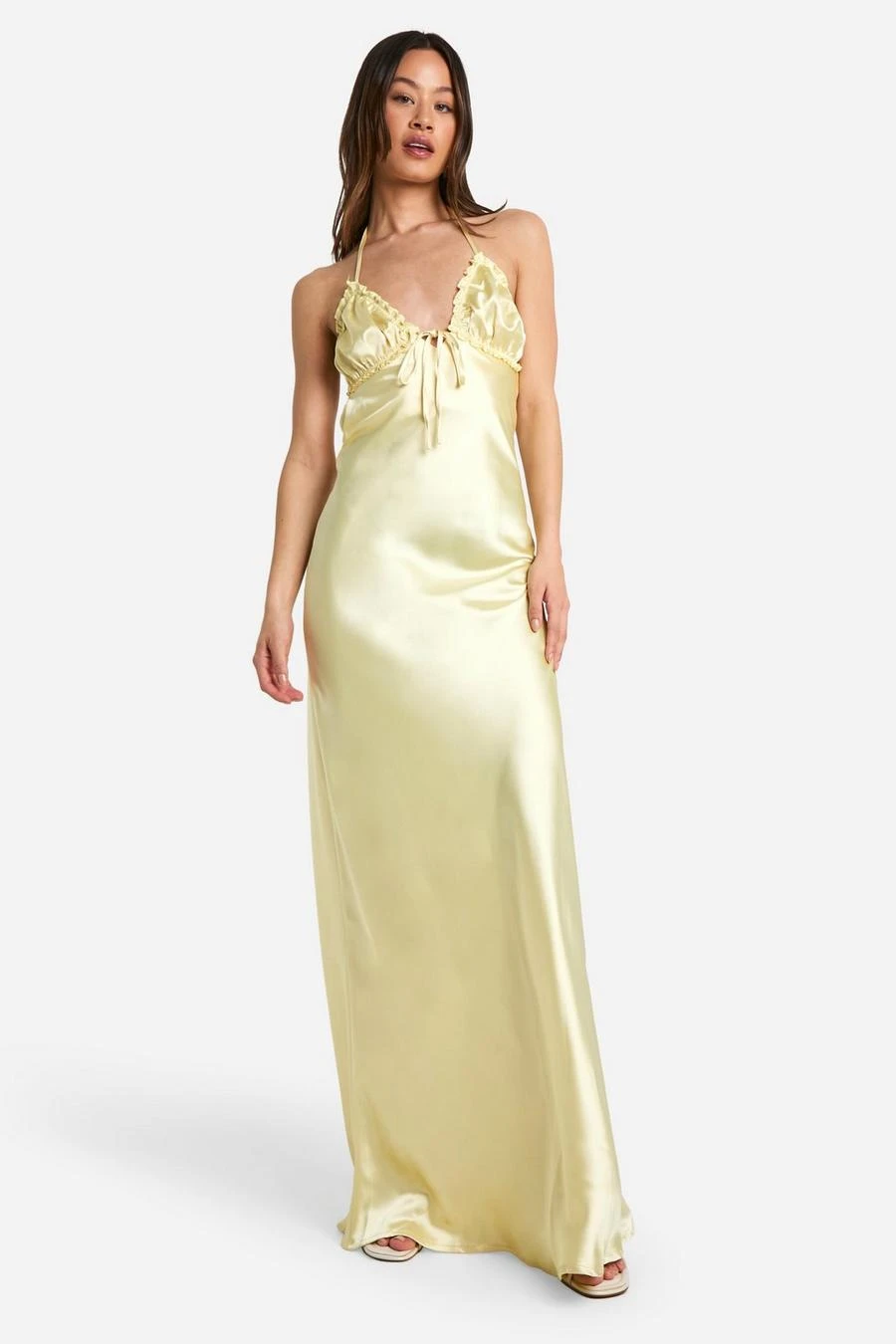 BOOHOO Tall Ruffle Satin Maxi Slip Dress
