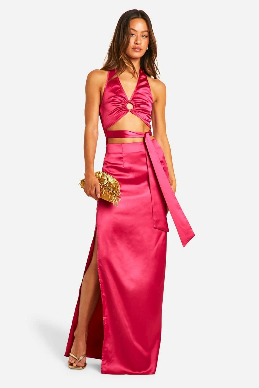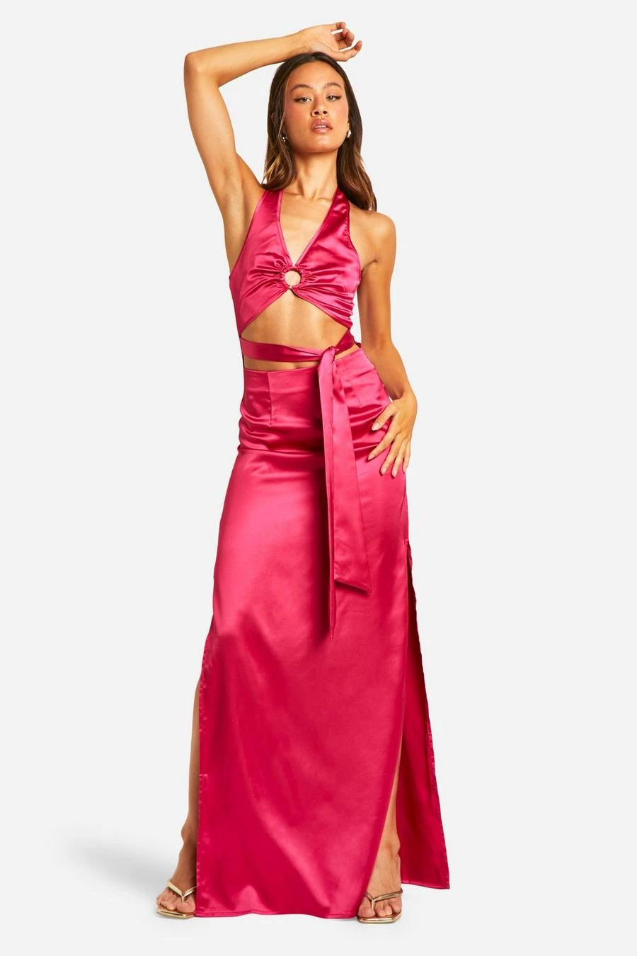 BOOHOO Tall Satin Cut Out Maxi Dress