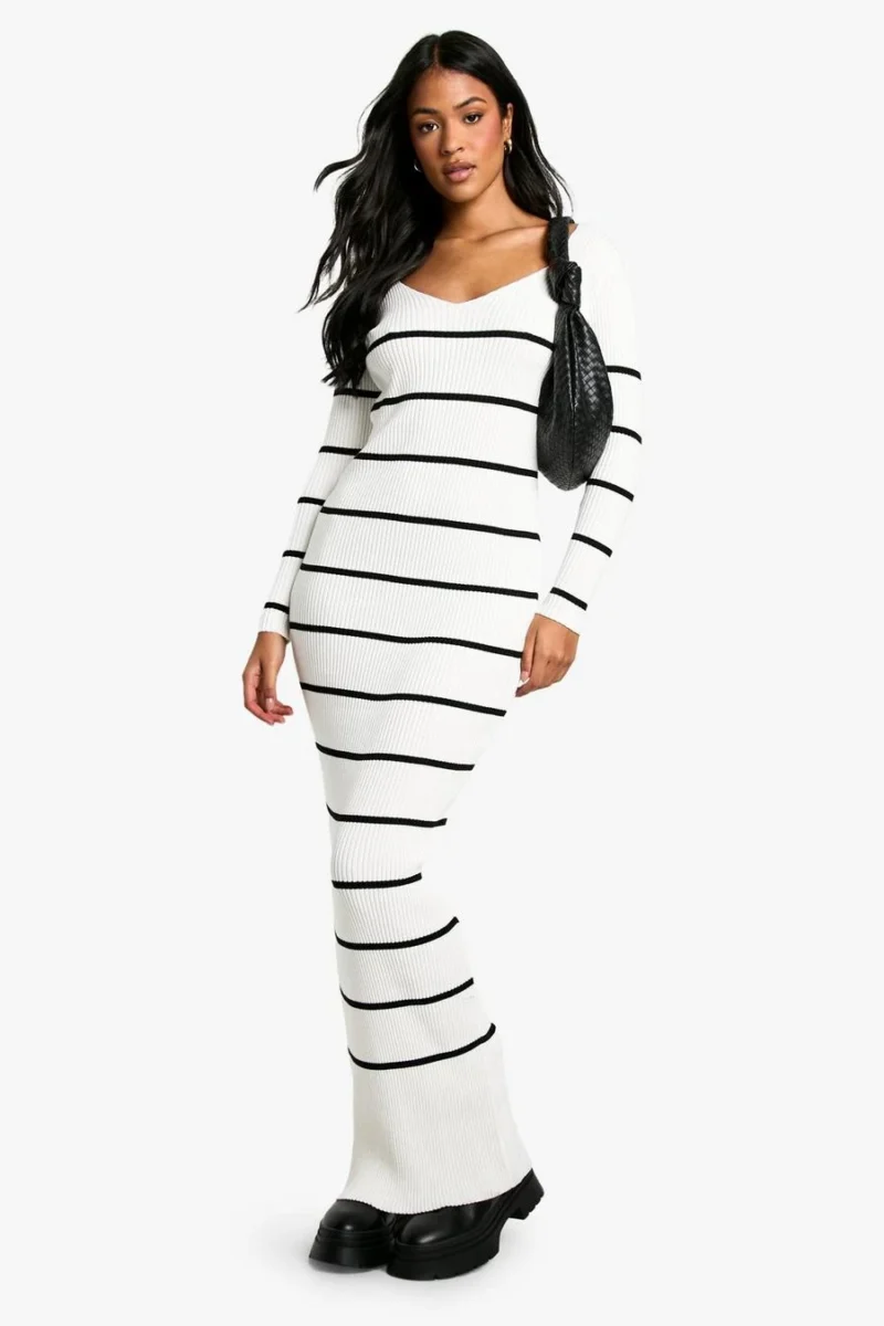 BOOHOO Tall Stripe Ribbed Knitted Maxi Dress