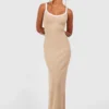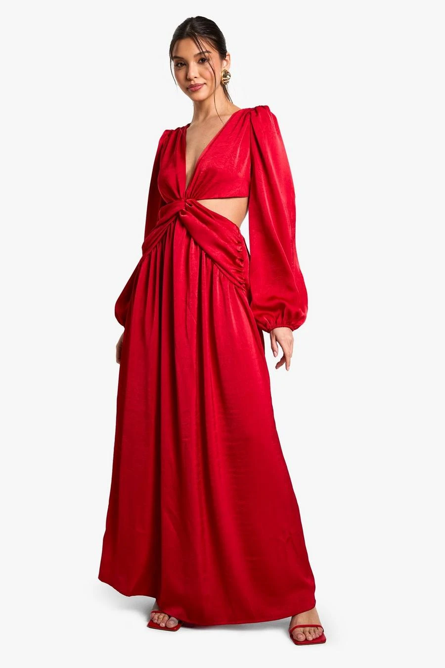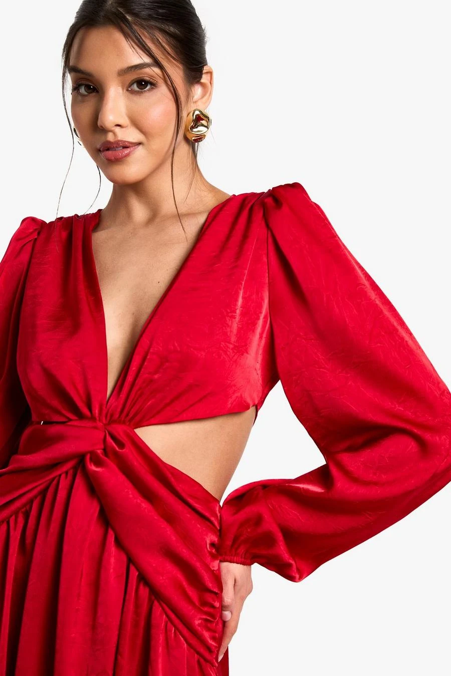 BOOHOO Textured Satin Cut Out Plunge Maxi Dress