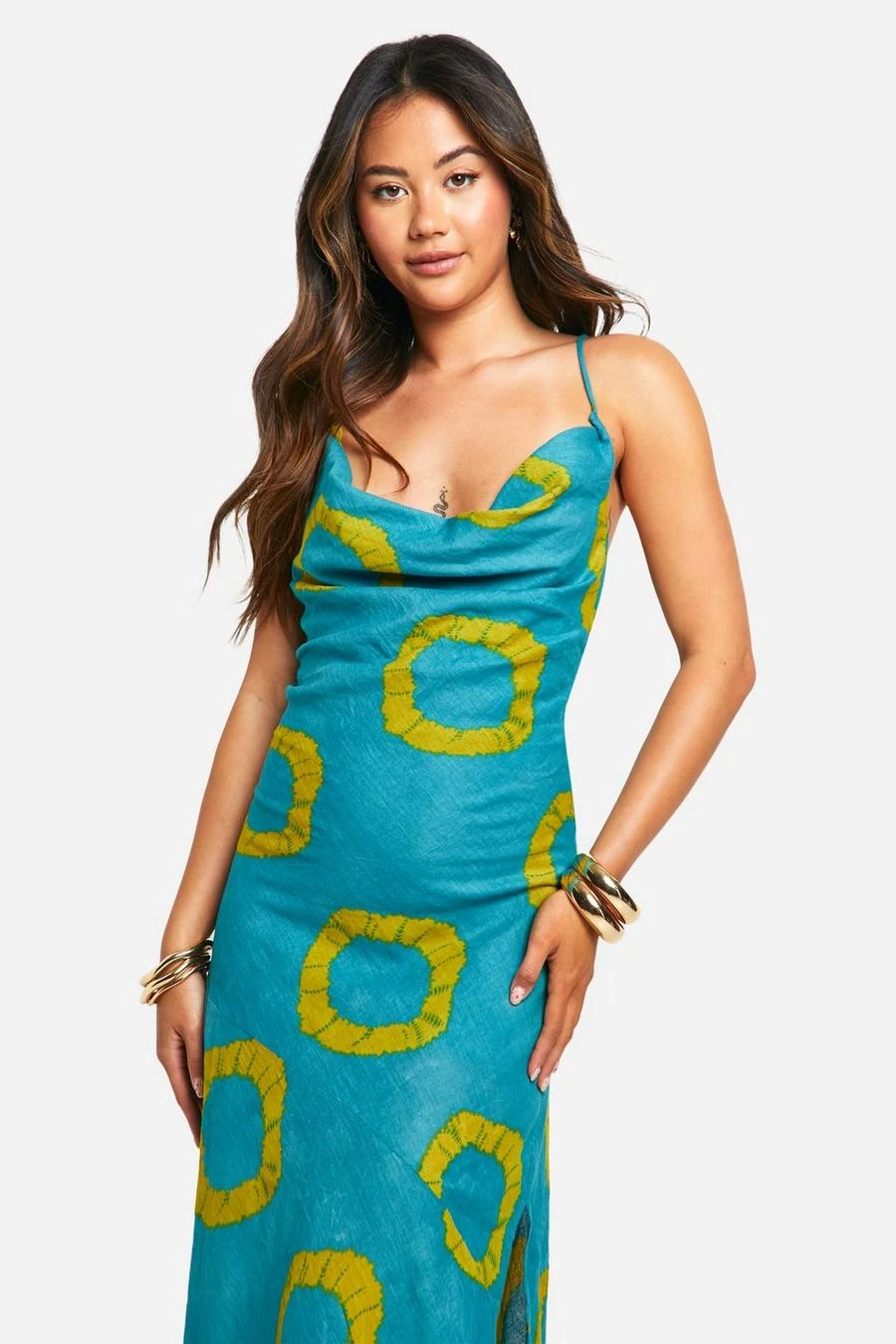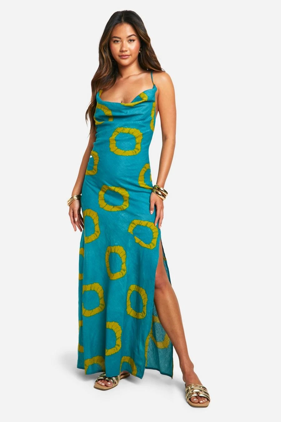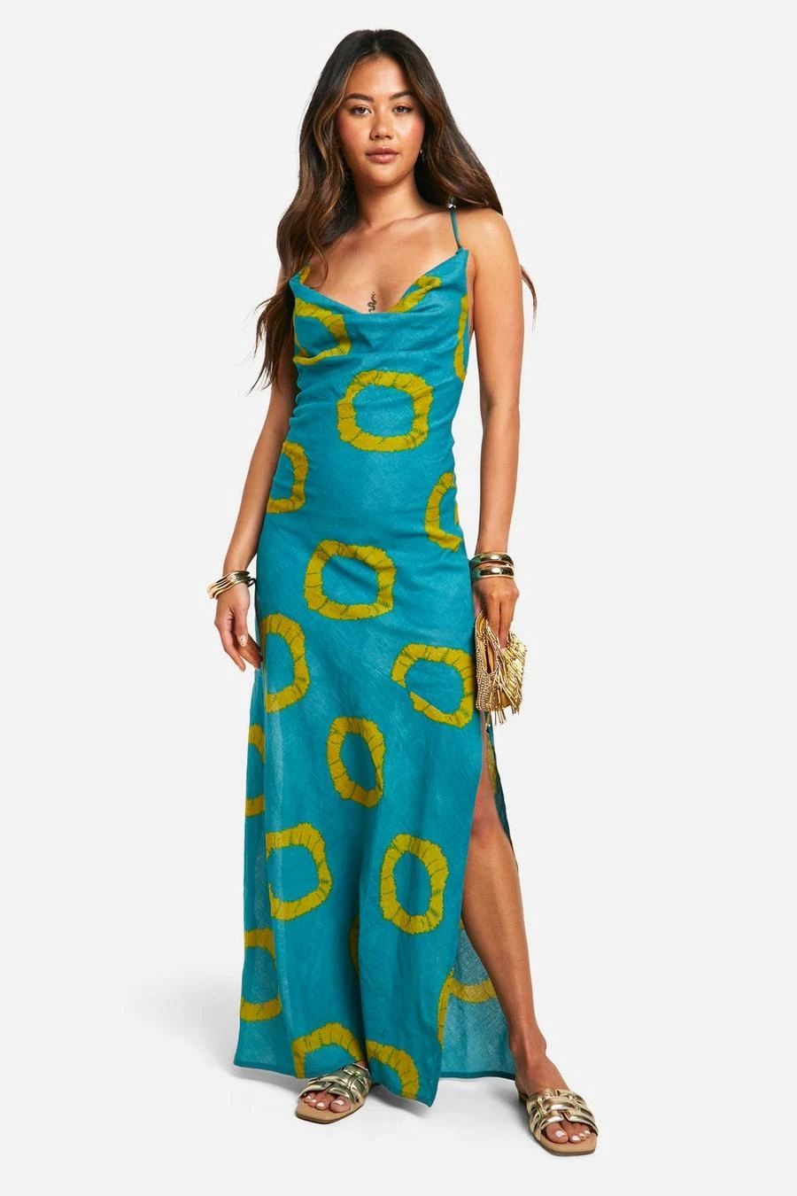 BOOHOO Tie Dye Cotton Cowl Neck Maxi Dress