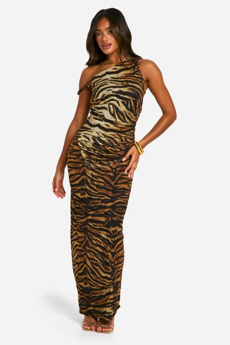 BOOHOO Tiger Mesh Rope Detail Asymmetric Maxi Dress