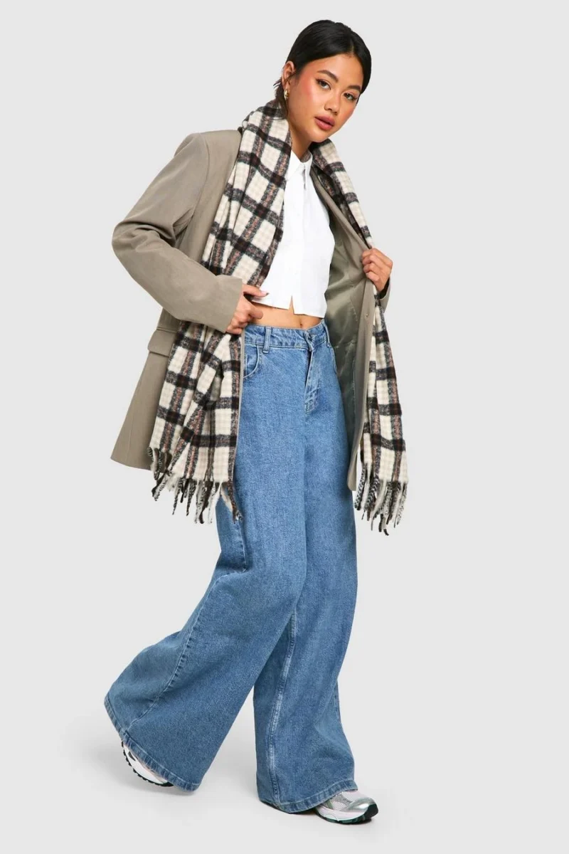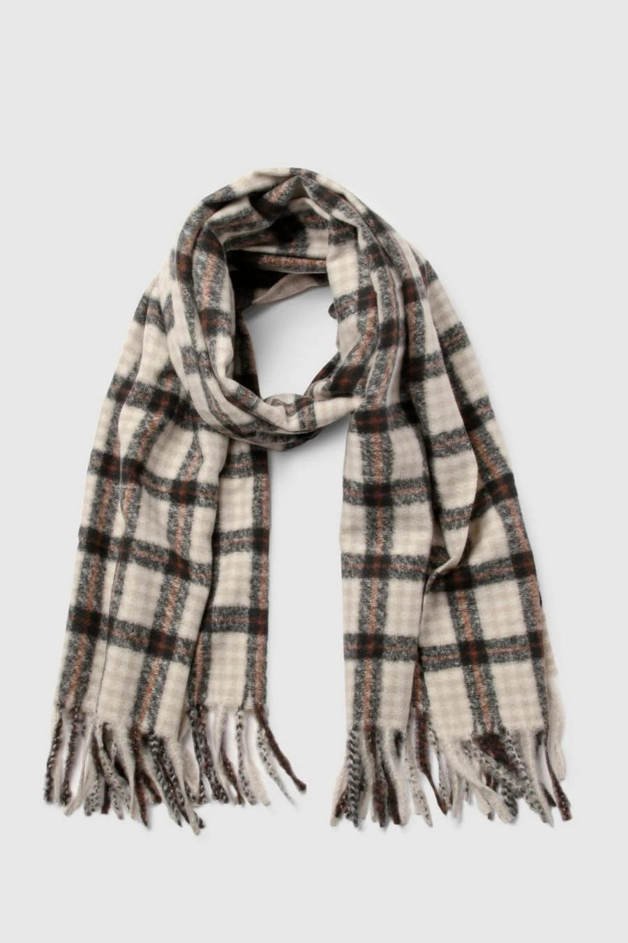 BOOHOO Tonal Checked Tassel Scarf