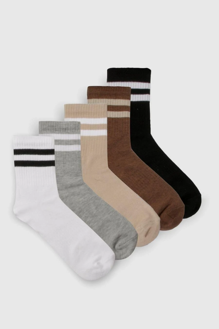 BOOHOO Tonal Stripe Sport Socks 5 Pack