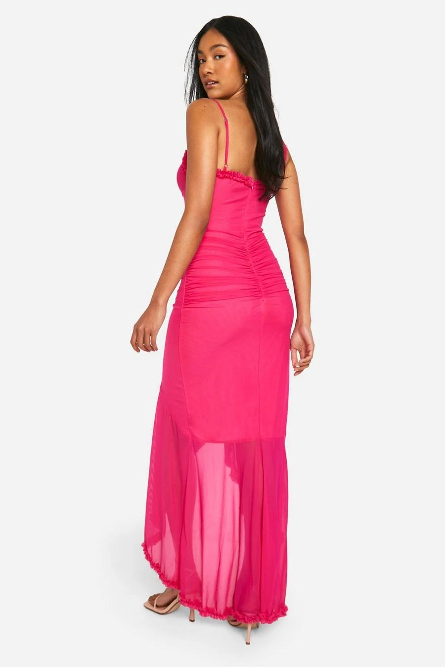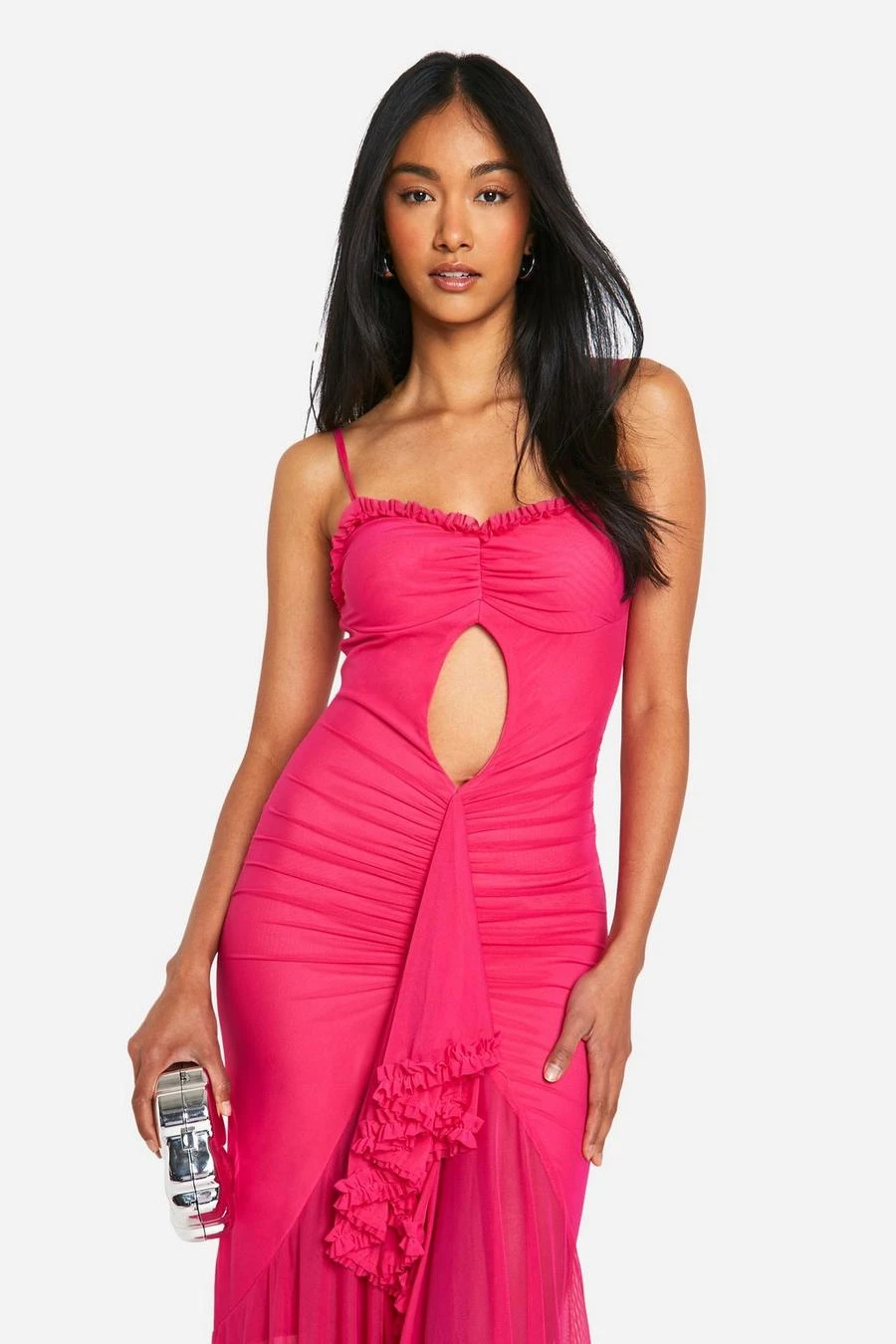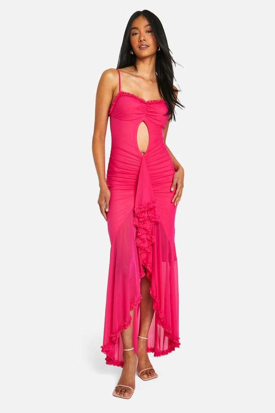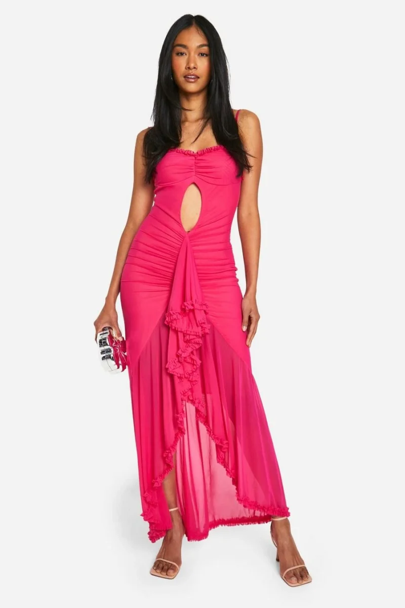 BOOHOO Trim Cut Out Extreme Ruffle Front Maxi Dress