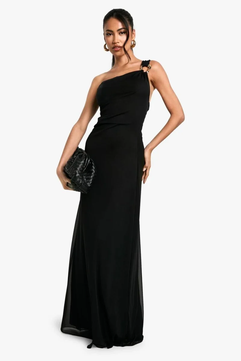 BOOHOO Trim Detail Mesh Fit And Flare Maxi Dress