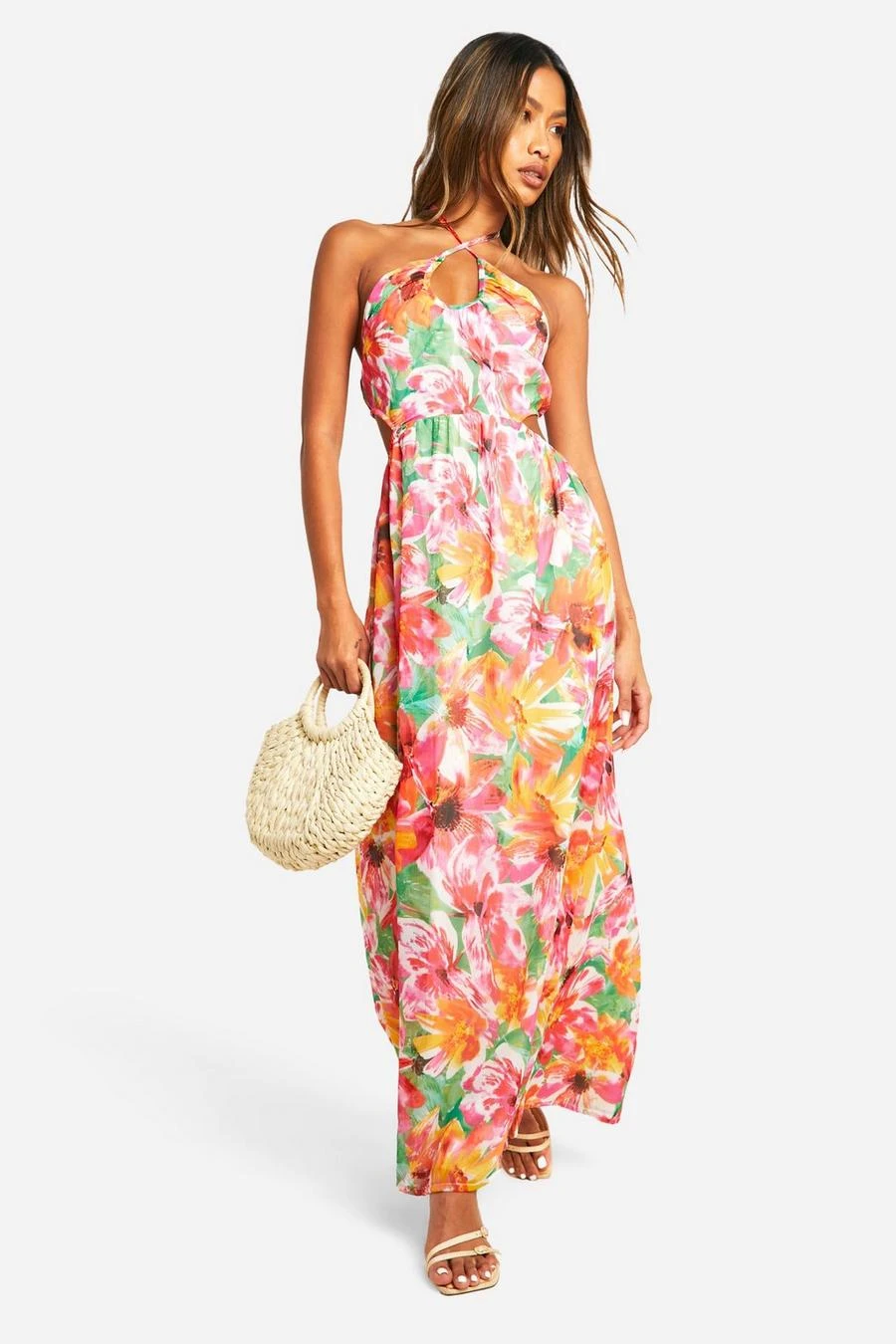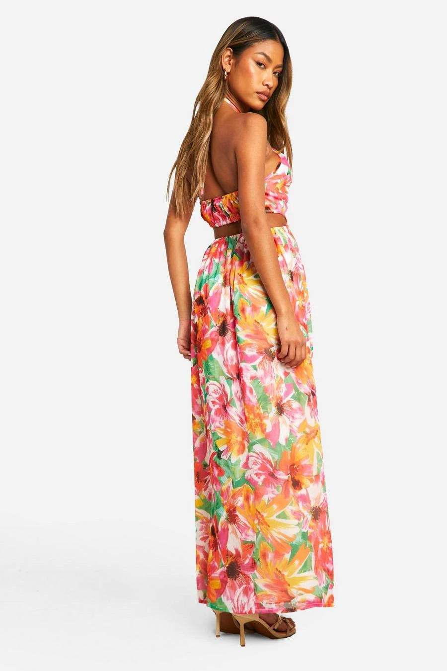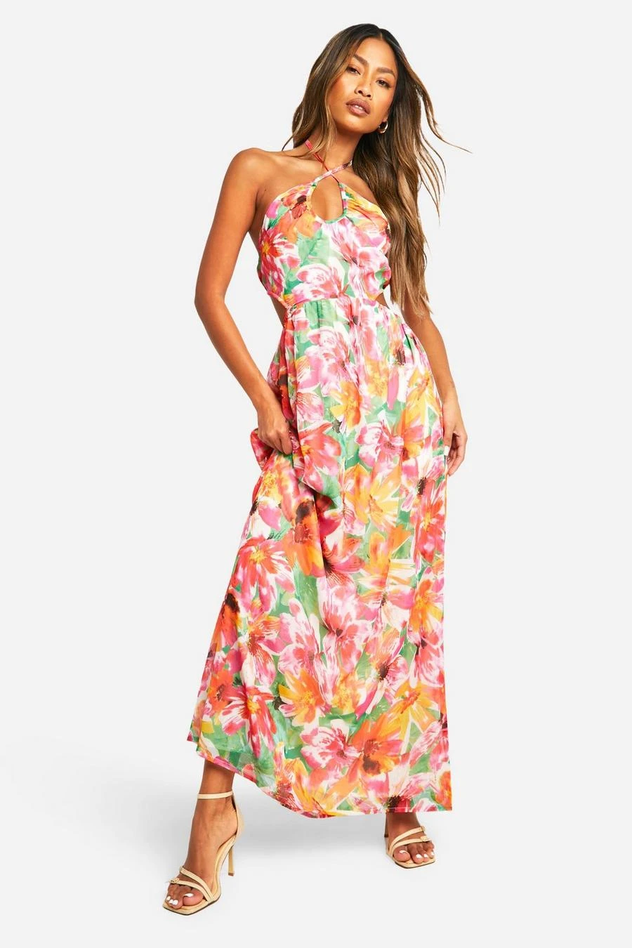 BOOHOO Tropical Halterneck Maxi Dress