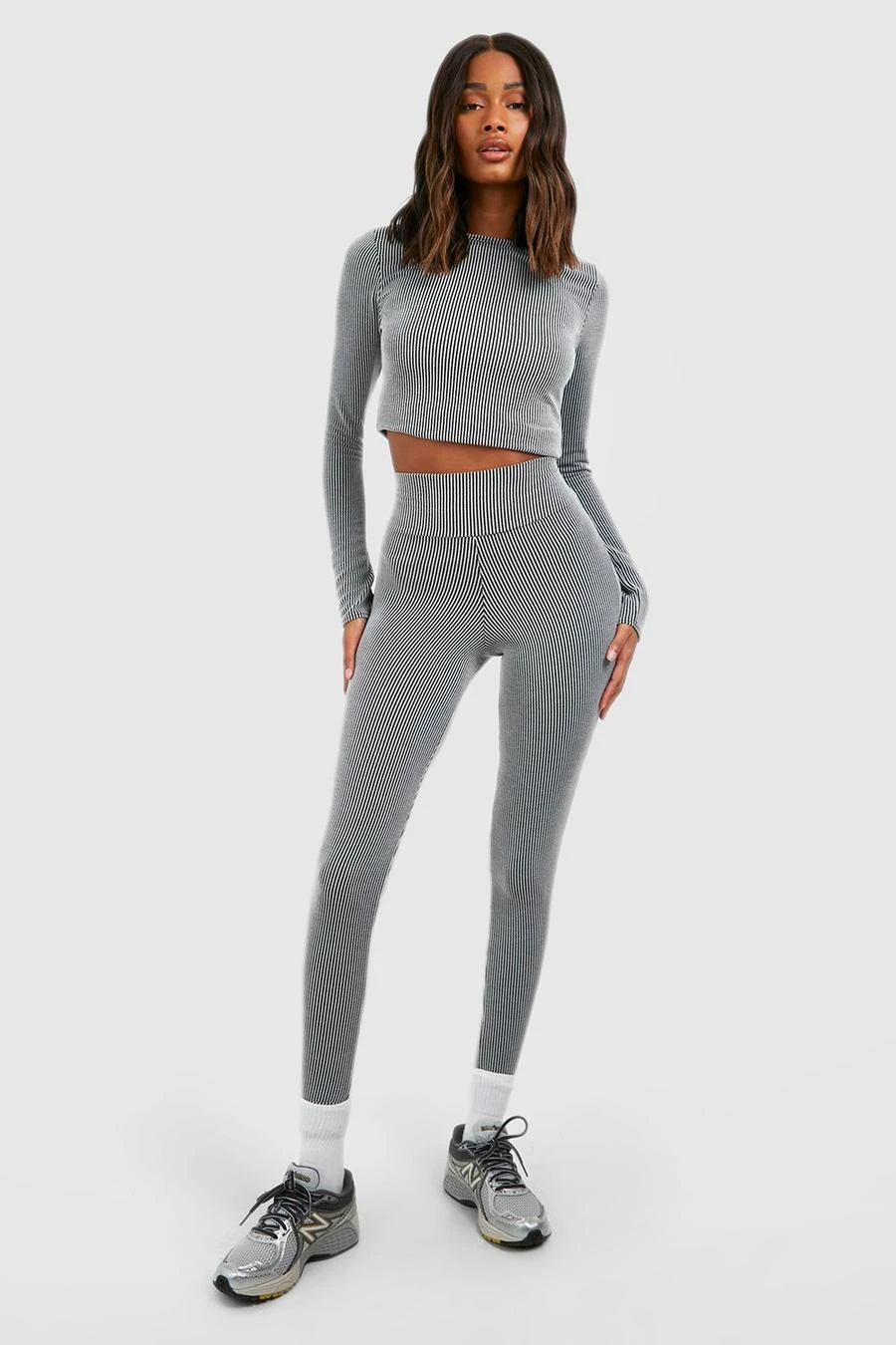 BOOHOO Two Tone Rib Long Sleeve Crop Top