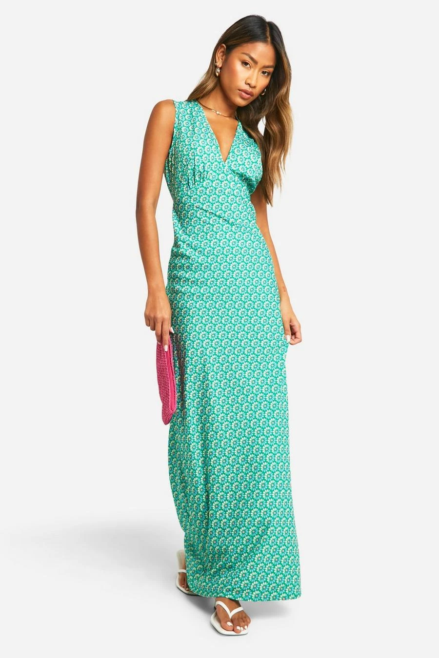 BOOHOO V Neck Floral Maxi Slip Dress