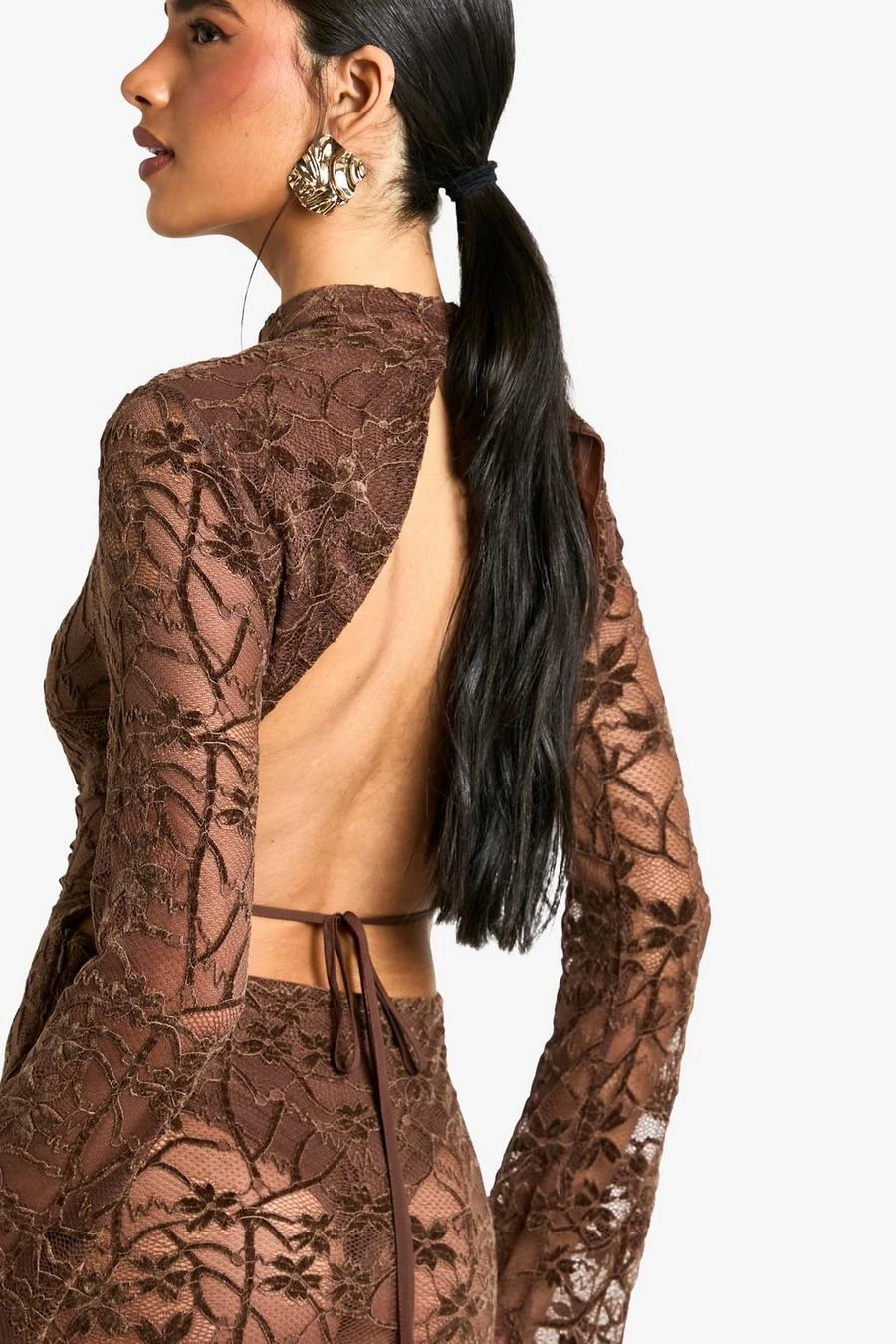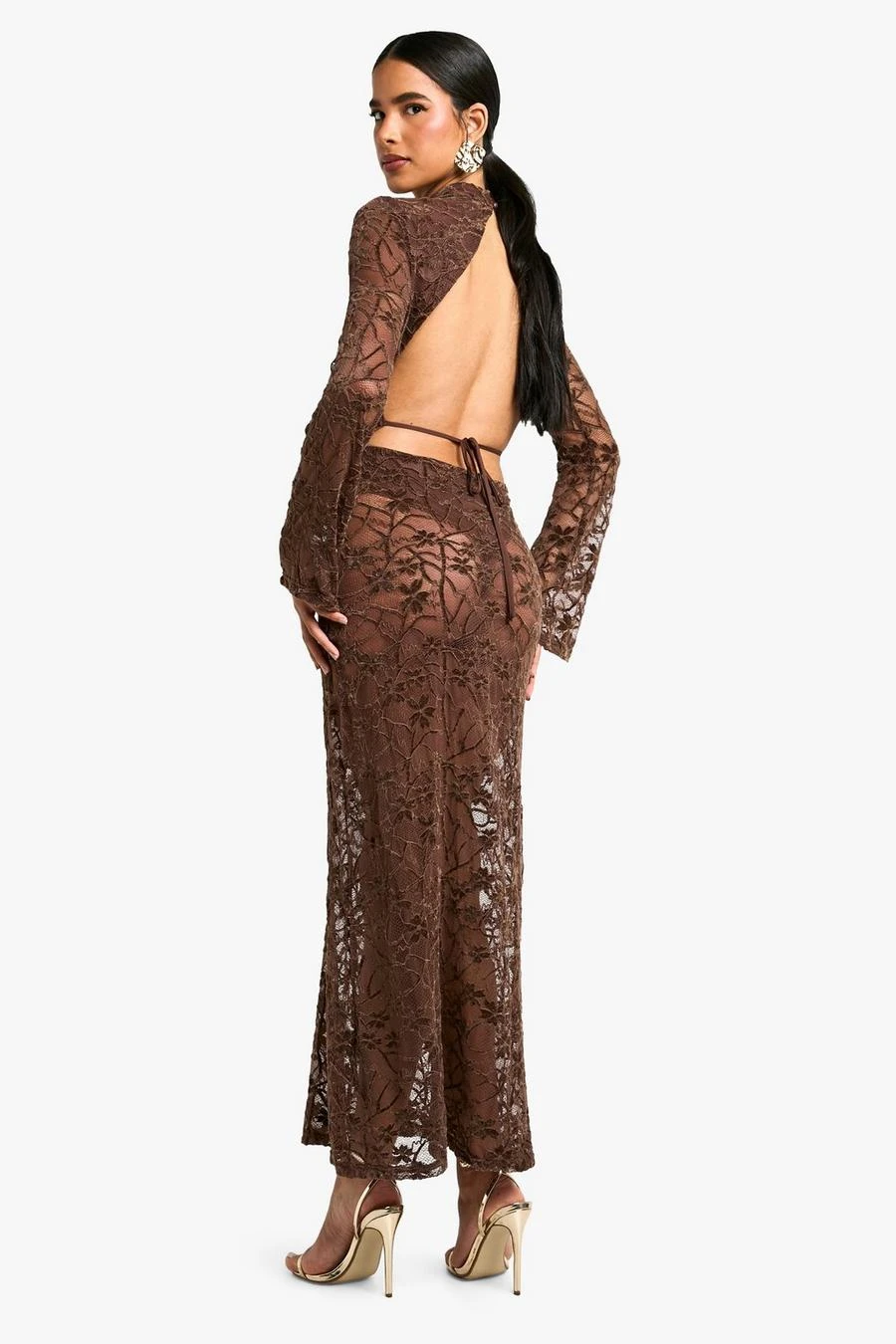 BOOHOO Velvet Lace High Neck Open Back Maxi Dress