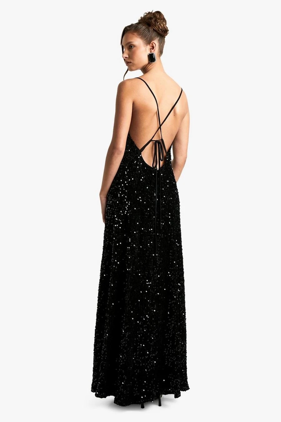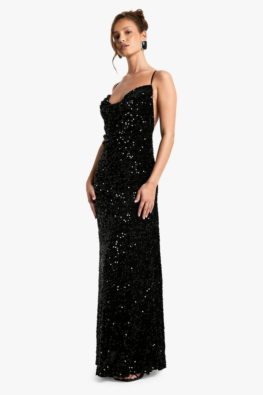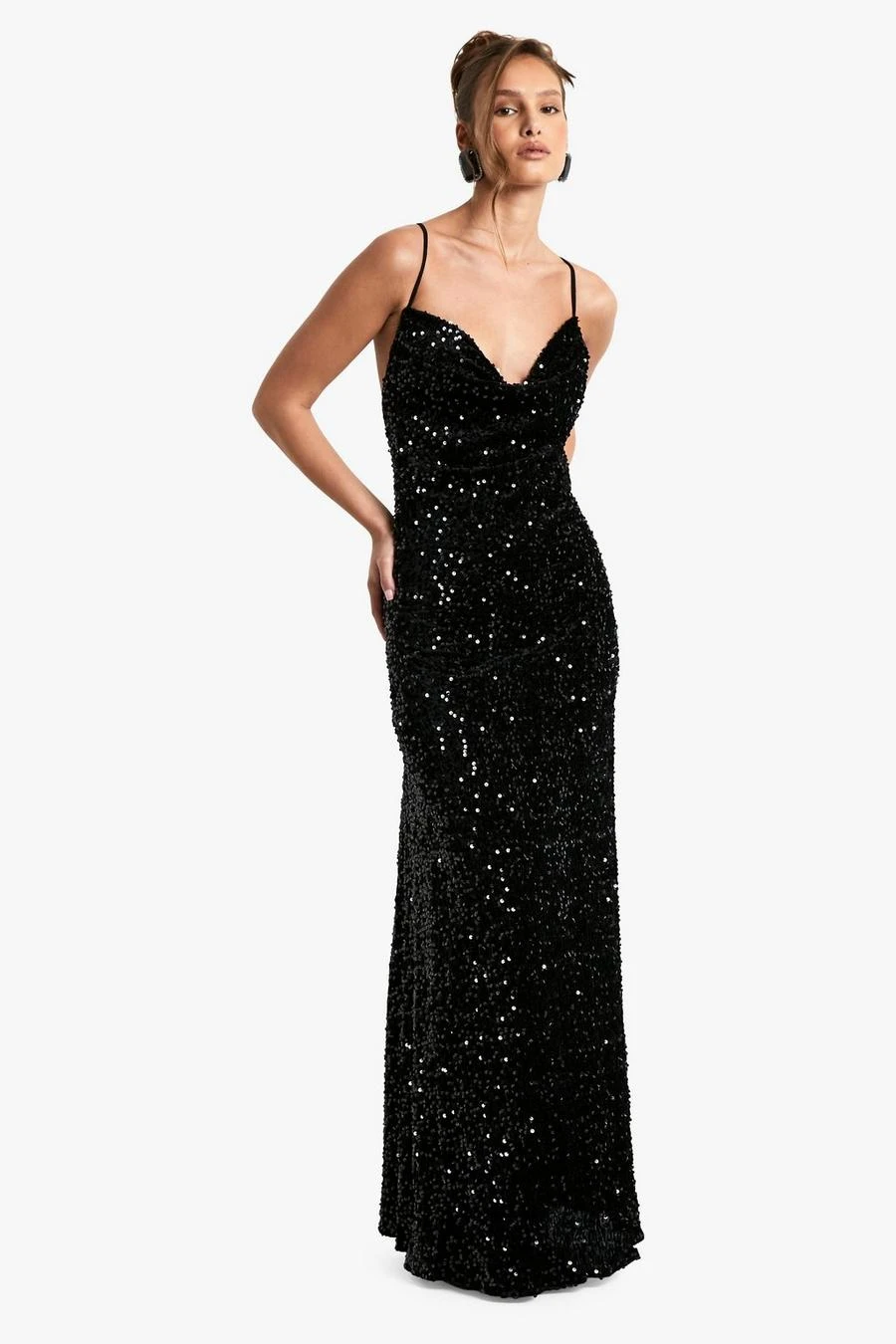 BOOHOO Velvet Sequin Cowl Neck Slip Maxi Dress