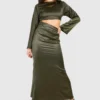 BOOHOO Velvet Tie Waist Racer Maxi Dress