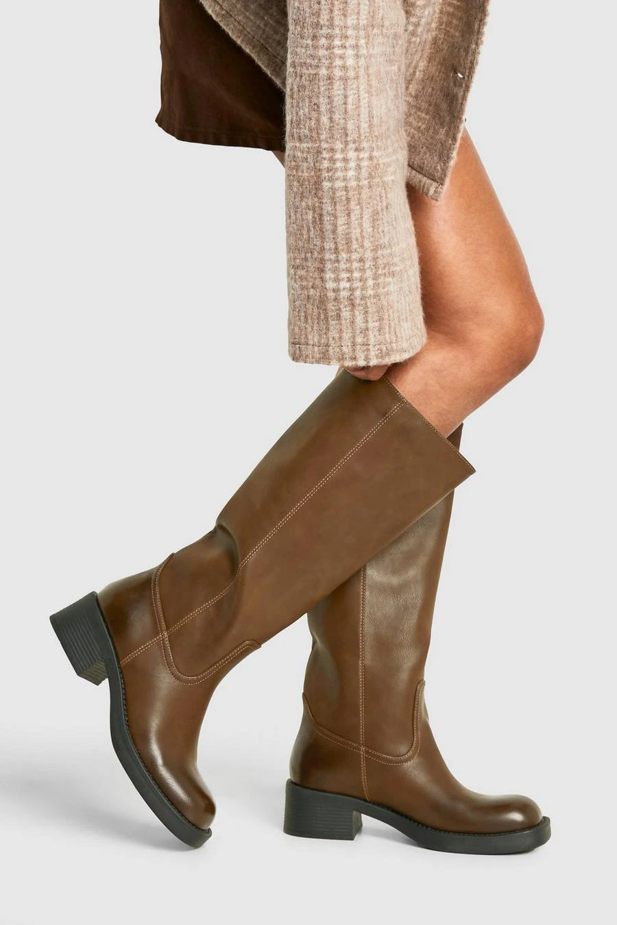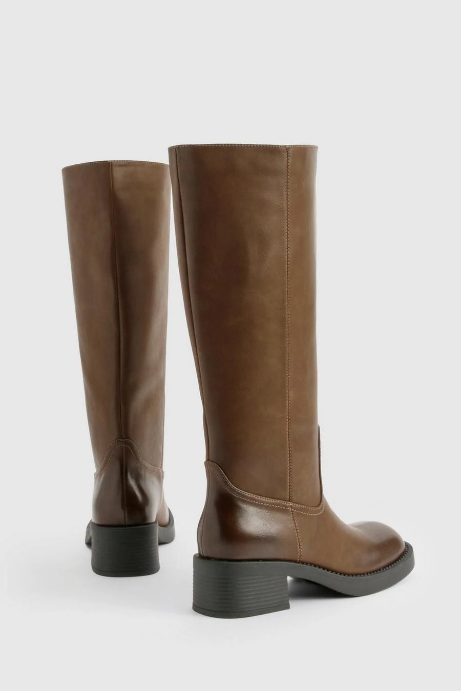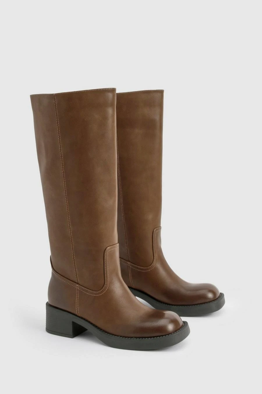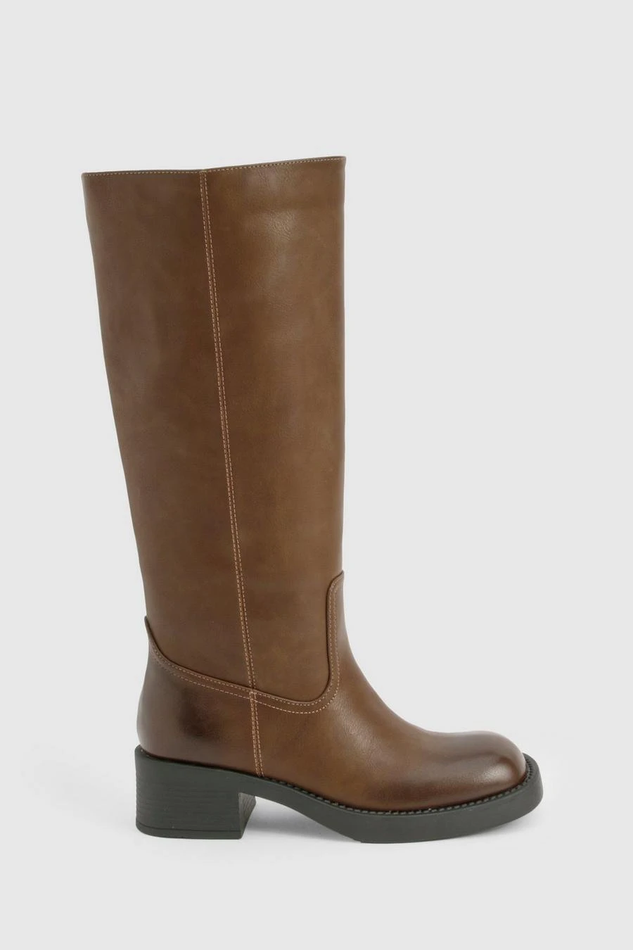 BOOHOO Vintage Look Burnished Toe Column Knee High Boot
