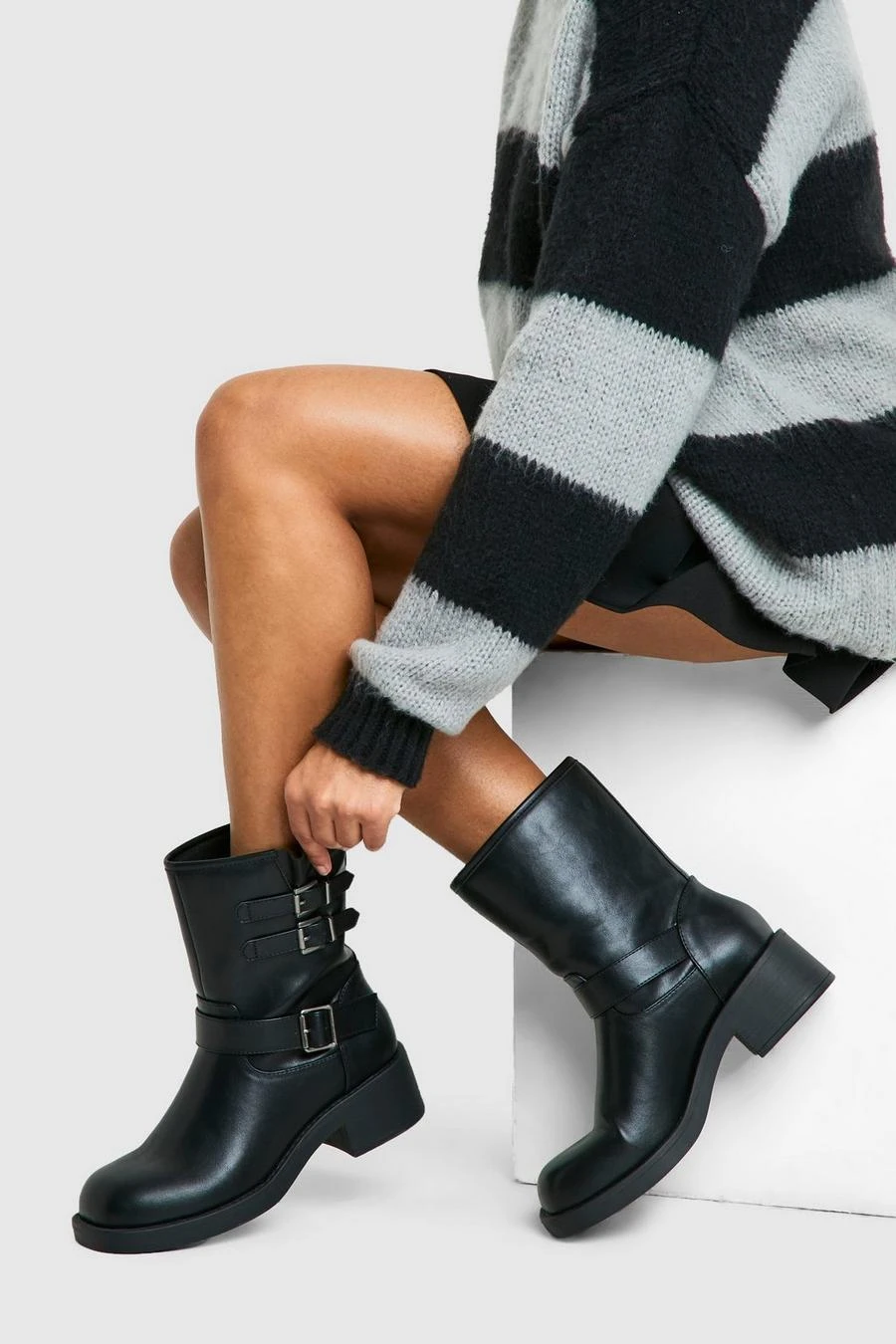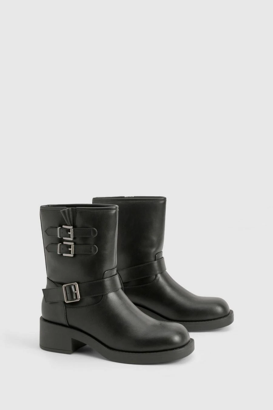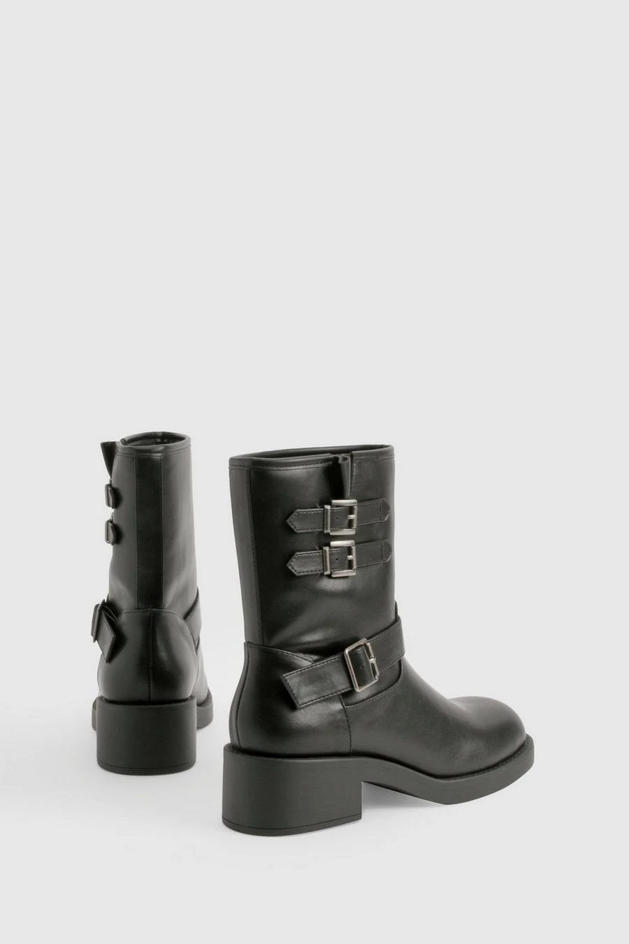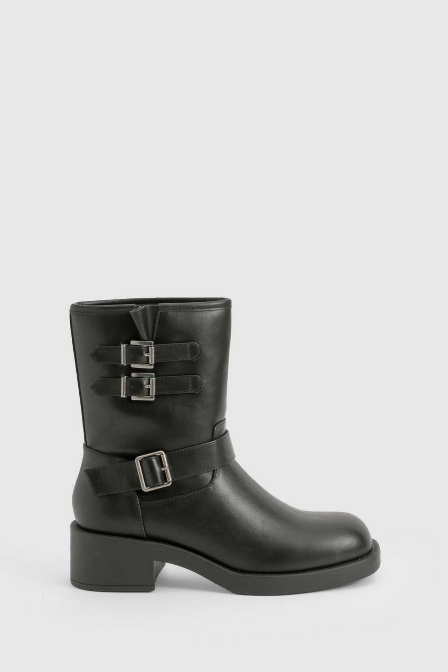 BOOHOO Vintage Style Buckle Detail Biker Boot