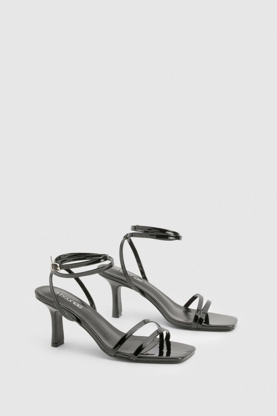 BOOHOO Vinyl Double Strap Heeled Sandals