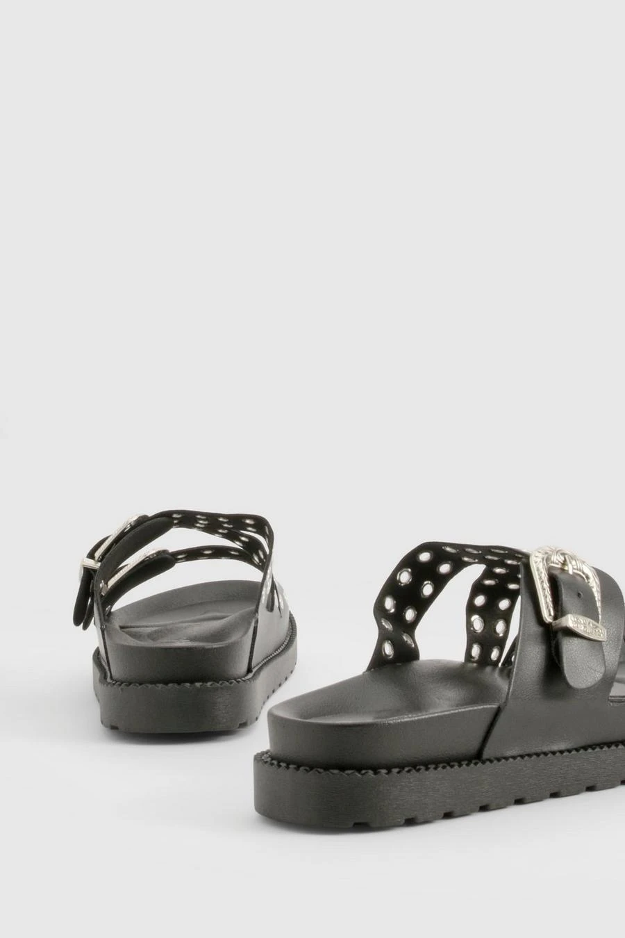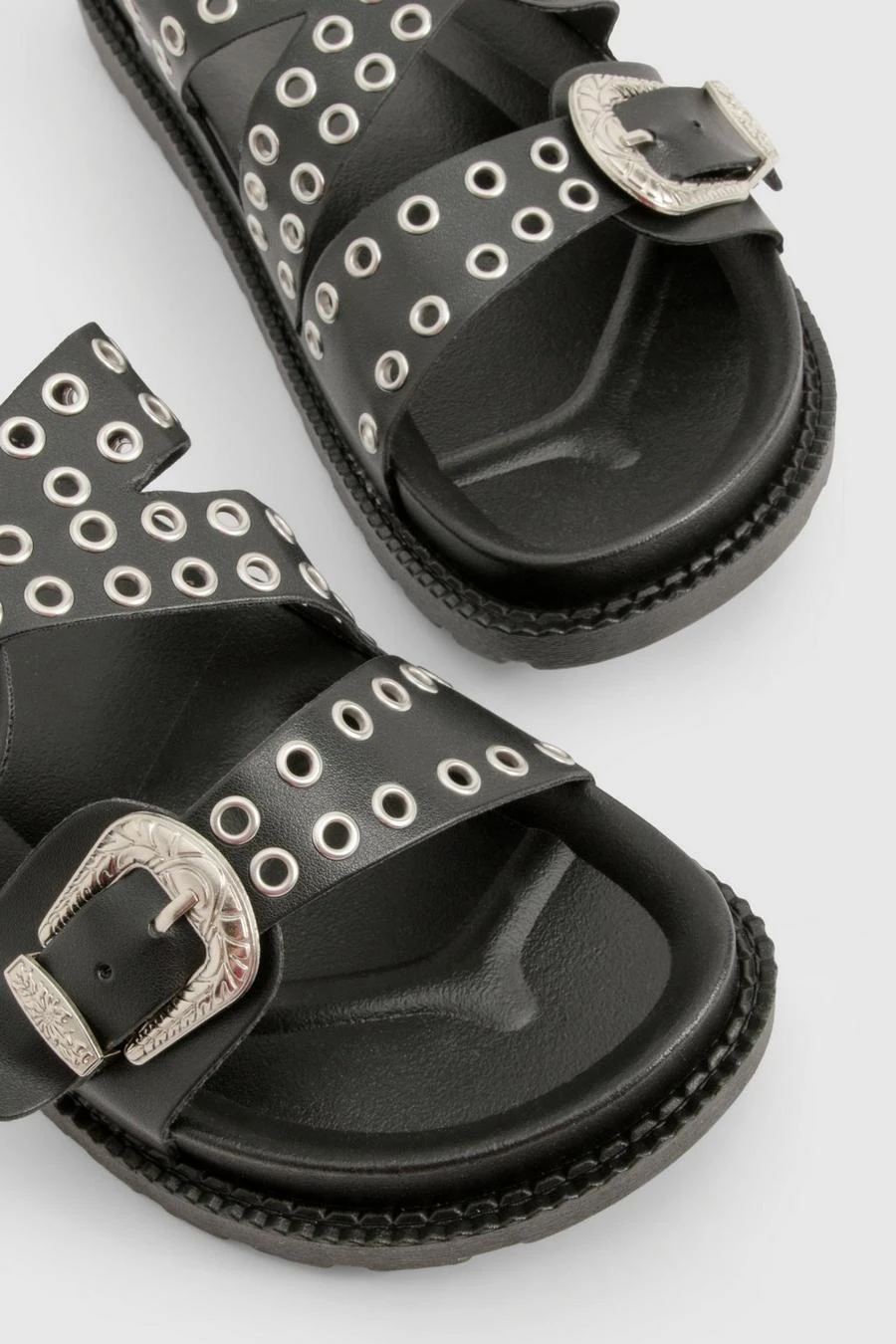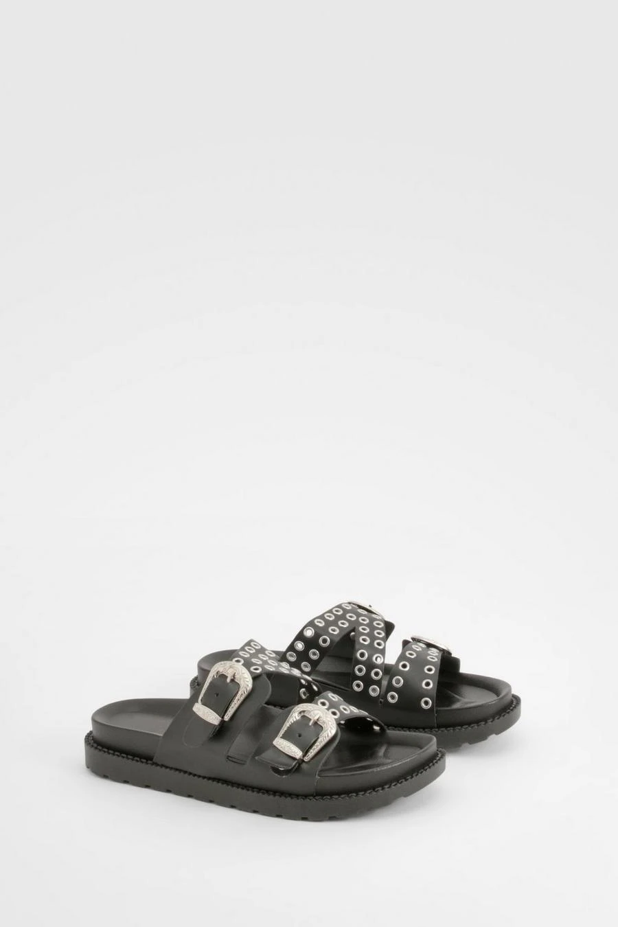 BOOHOO Western Buckle Eyelet Chunky Sliders