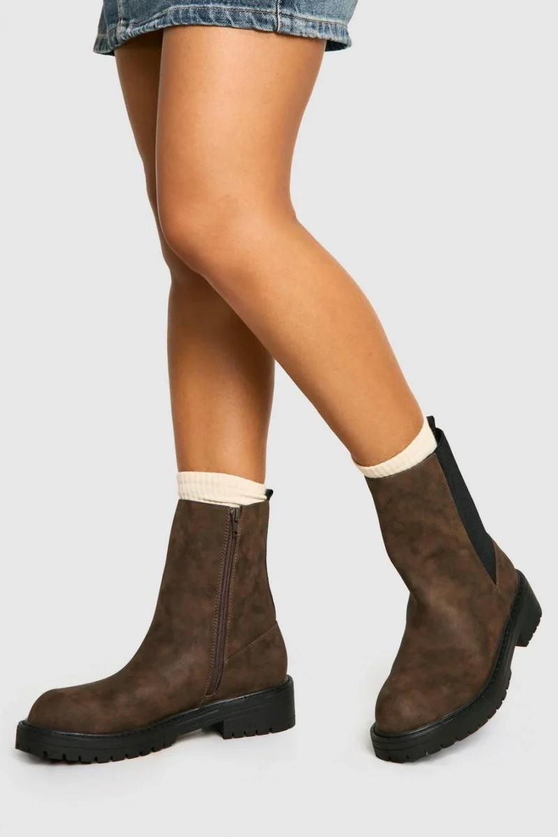 BOOHOO Wide Fit Ankle Detail Distressed Pu Chelsea Boot