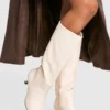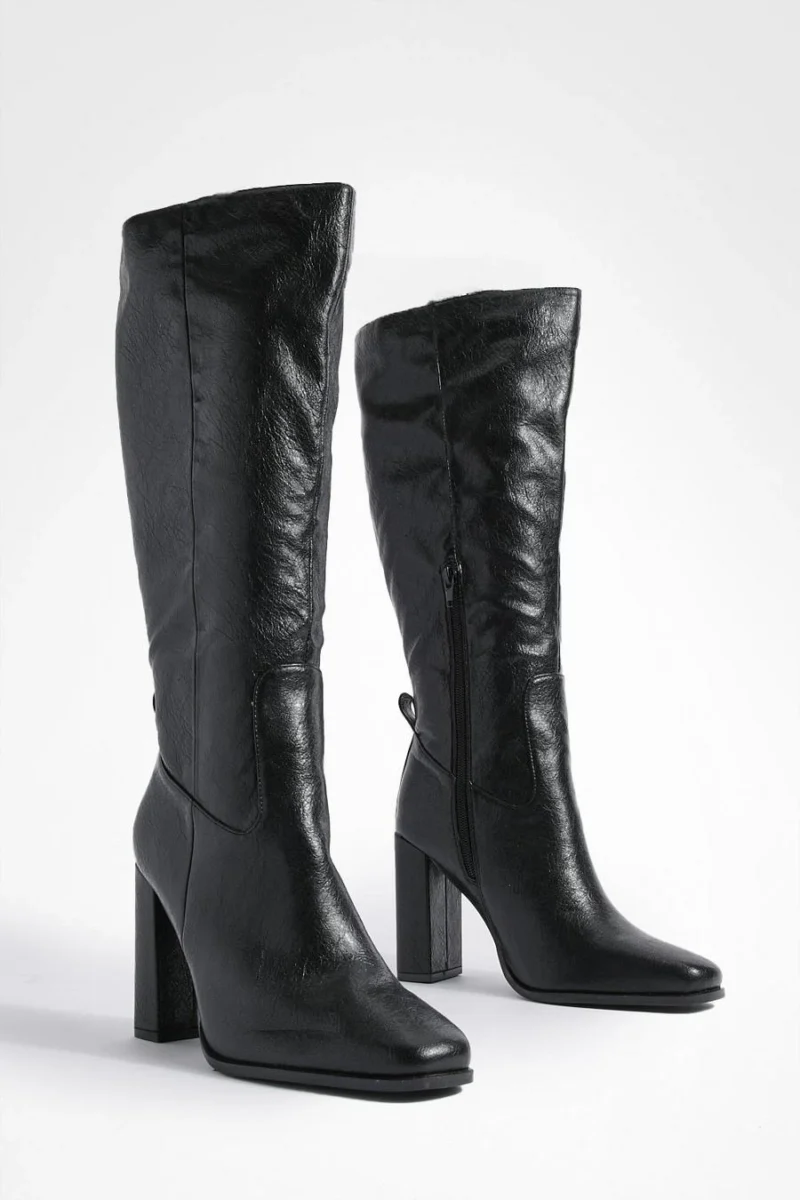 BOOHOO Wide Fit Block Heel High Shine Knee High Boots