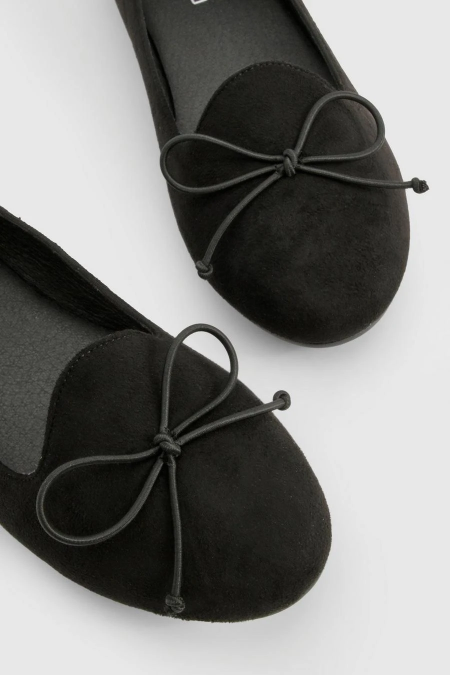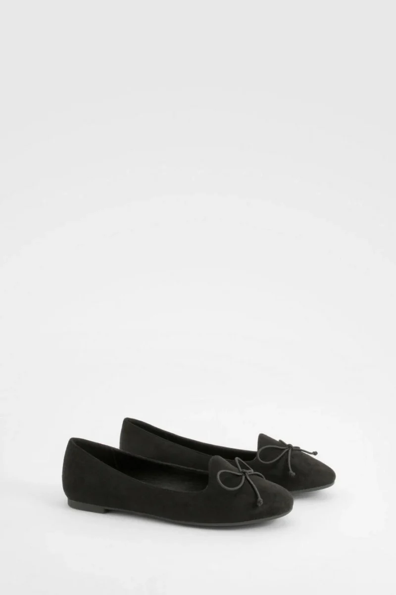 BOOHOO Wide Fit Bow Basic Slipper Ballet Flats