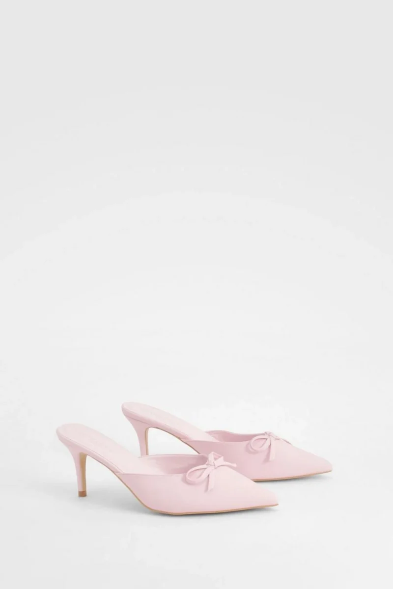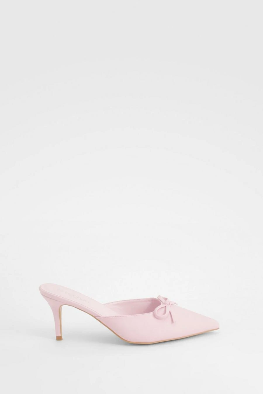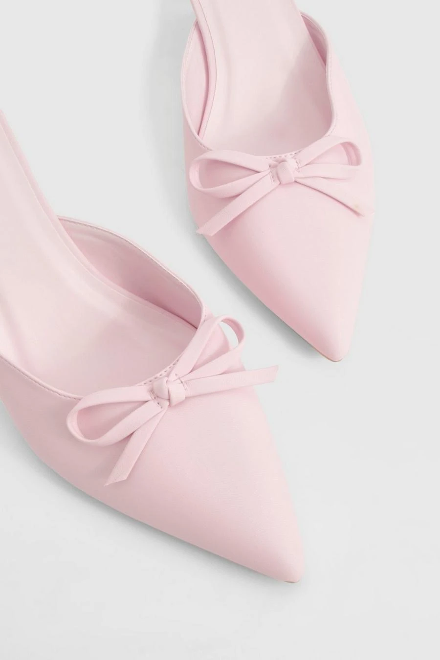 BOOHOO Wide Fit Bow Detail Backless Court Shoes